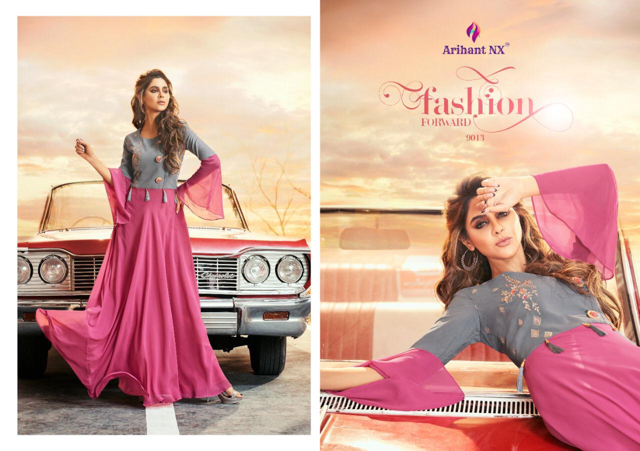 *Arihant NXÂ?* Presents Kurti Series Gown Catalogue Name:- *ZARA Vol-2(7 Pcs)* *(D.NO.9008 To 9015)* *Fabrics Details:-* Top:= Semi Jorjat Inner=Royal Crap *Size- S-36 M-38 L-40 XL-42 XXL-44* Des.Total:-8 Pcs *Rate:-7?9?5?/-(+GST 5% EXTRA)* Dispatching On:=25-May-2019 (Arihant Designer) NOTE:-5%GST EXTRA |