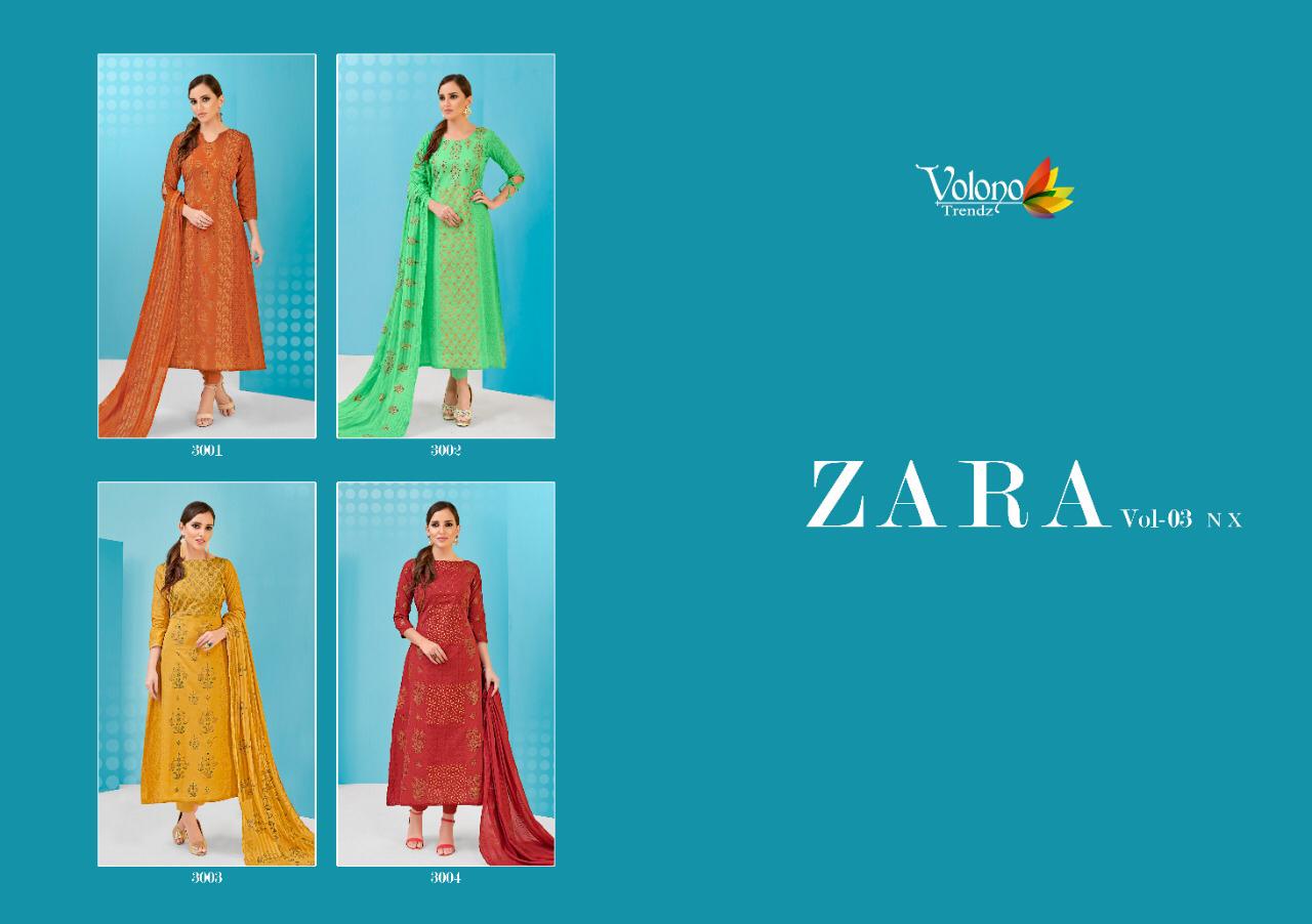 Buy Online Zara Vol 3 Nx By Volono Trendz Dress Materials Wholesale Supplier And Dealer Gujarat 4 Pcs of Full Catalogue at Wholesale Price. Looking for Zara Vol 3 Nx By Volono Trendz Dress Materials Wholesale Supplier And Dealer Gujarat Full Catalouge at Best Price? Buy Now Zara Vol 3 Nx By Volono Trendz Dress Materials Wholesale Supplier And Dealer Gujarat at Wholesale Rate of Rs 2780 with Total 4 Pcs from authroized dealer and supplier of VOLONO TRENDZ Brand. Cost of Each piece is just only Rs 695 which is very low and affordable price to resale the product in your retail store ,This is Surat based Wholesale Supplier & Dealer of VOLONO TRENDZ Brand. Click on Brand name to Know more about VOLONO TRENDZ Brand's products.Call or Whatsapp on 9898838984 for booking or enquiry