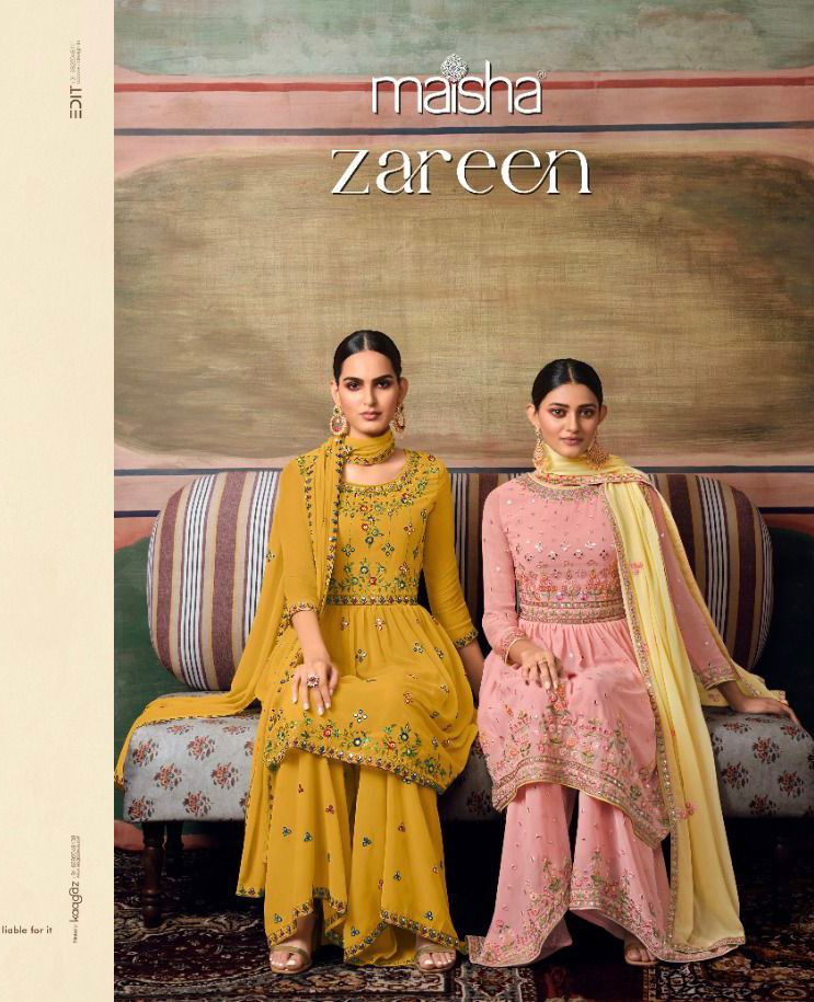 *READY AT OFFICE* BRAND NAME - "*Maisha*" CATALOG NAME - *ZAREEN* SERIES Â? *11062 TO 11066* BEAUTIFUL AND DESIGNER DRESSES FOR OUR COMING FESTIVALS ?? ? Top - *ON PURE GEORGET beautiful DESIGNER embroidery work * ?BOTTOM * *on PURE georgett delicate emboidery works.. *?top and bottom inner -pure shantoon * ???DHUPPATA~ ON PURE georgett,beutifull emboidery work Â? *RATE - 2295/- per pcs .* Please note . TYPE-UNSTITCH *SET TO SET* ( Disconut Available). Single ( No any less ). *Set & loose @ Single* *READY AT OFFICE* BOOK YOUR ORDER NOW ?? Regards Maiisa 100+single |