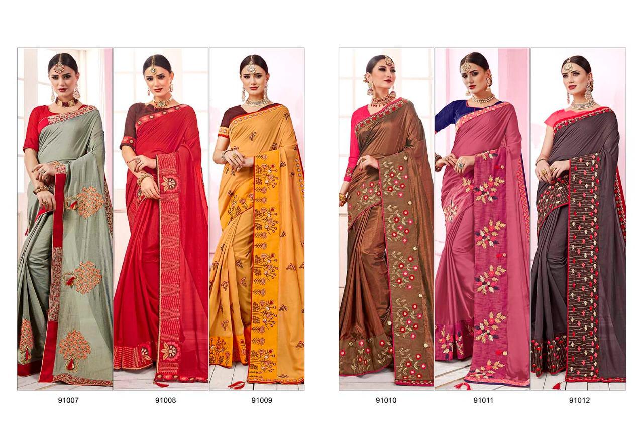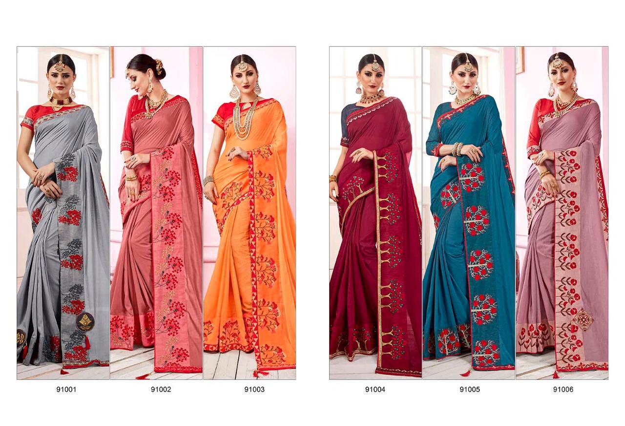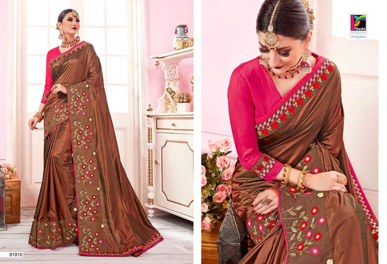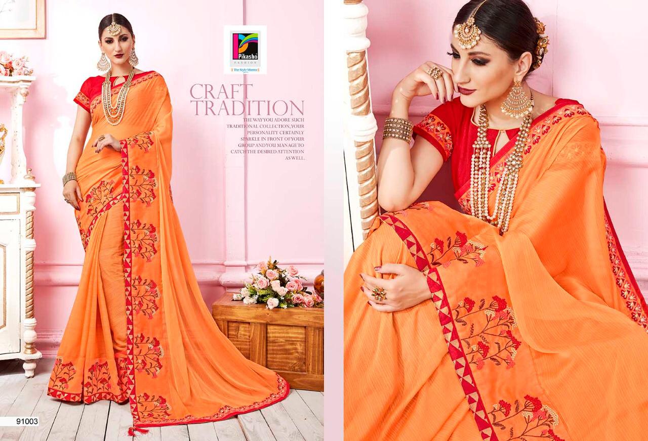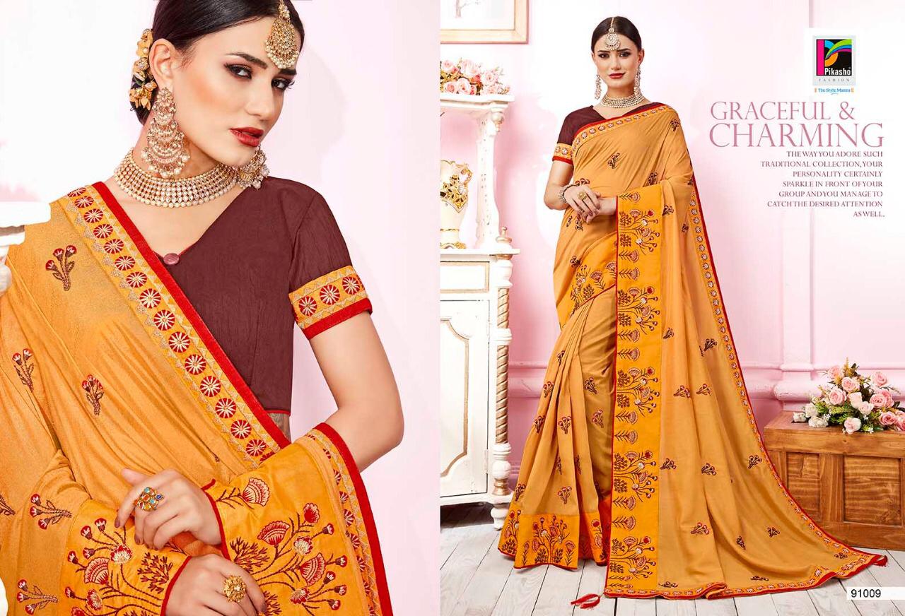 Buy Online Zareen By Pikasho 91001 Series Fancy Party Wear Saree Collection Wholesaler Surat 12 Pcs of Full Catalogue at Wholesale Price. Looking for Zareen By Pikasho 91001 Series Fancy Party Wear Saree Collection Wholesaler Surat Full Catalouge at Best Price? Buy Now Zareen By Pikasho 91001 Series Fancy Party Wear Saree Collection Wholesaler Surat at Wholesale Rate of Rs 11100 with Total 12 Pcs from authroized dealer and supplier of Pikasho Fashion Brand. Cost of Each piece is just only Rs 925 which is very low and affordable price to resale the product in your retail store ,This is Surat based Wholesale Supplier & Dealer of Pikasho Fashion Brand. Click on Brand name to Know more about Pikasho Fashion Brand's products.Call or Whatsapp on 9898838984 for booking or enquiry