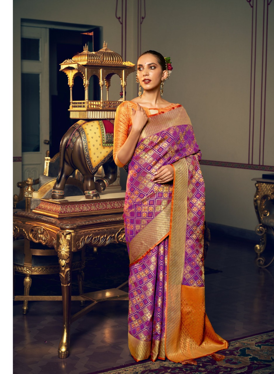*_New Catalog Launching_* Catalog Name: *_Zari Patola_* Brand: *_Sangam Prints_* Product Type: Saree Fabric: Patola Silk Price Per Piece: 1275/- Gst Extra: 5% Work: Weaving Other Specifications: Zari Weaving Saree Mtr: 5.5 Mtr Blouse: 0.8 Mtr Total Pcs: 6 *_Book your orders now_* Single 100+ |