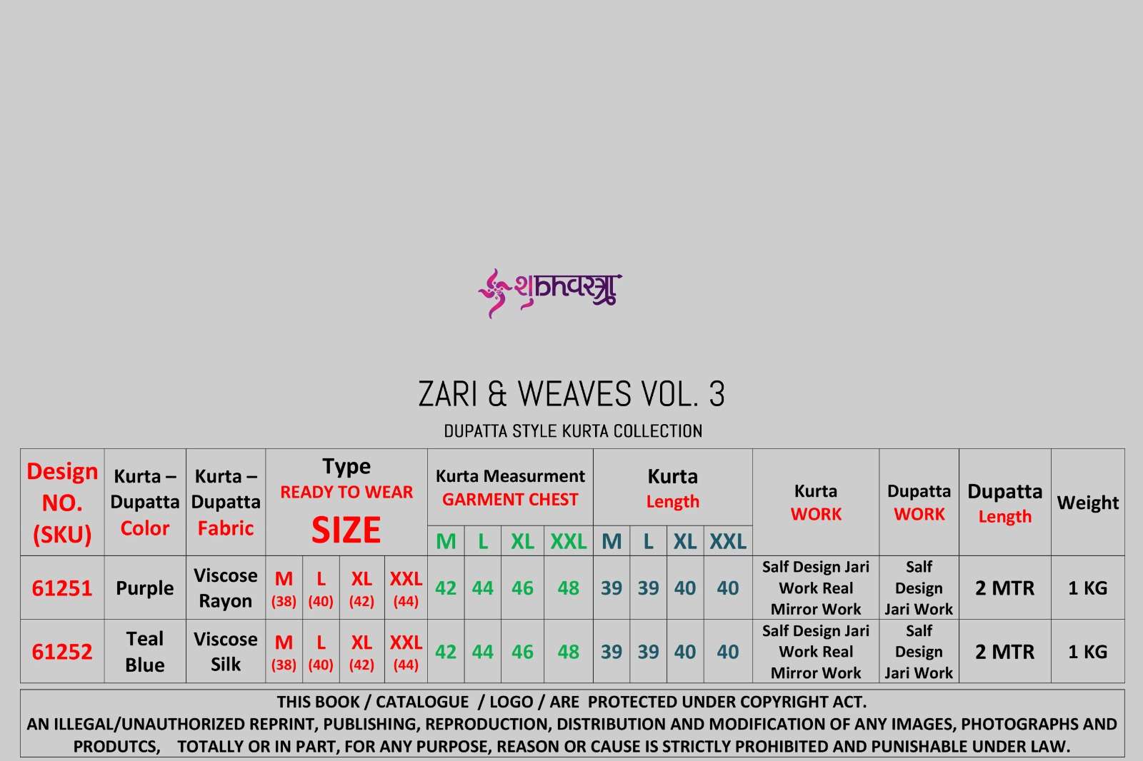 💰 *Zari & Weaves Vol. 3 • RATE LIST (KURTA+DUPATTA)* 💰