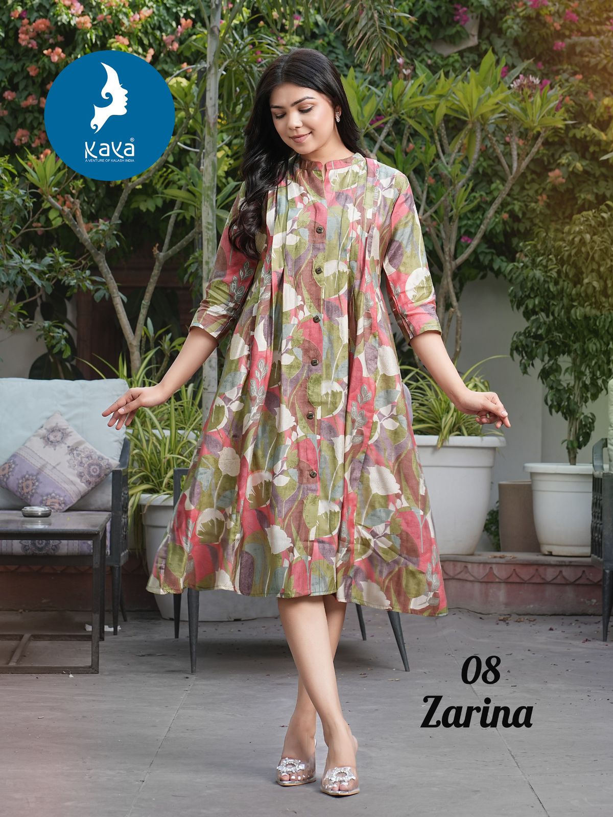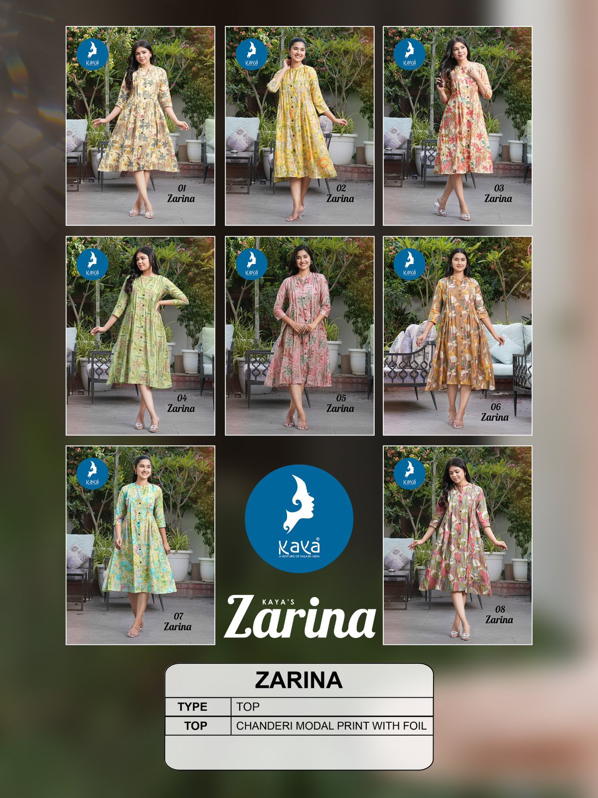 Buy Online Zarina By Kaya Kurti Anarkali Top Collection 8 Pcs of Full Catalogue at Wholesale Price. Looking for Zarina By Kaya Kurti Anarkali Top Collection Full Catalouge at Best Price? Buy Now Zarina By Kaya Kurti Anarkali Top Collection at Wholesale Rate of Rs 0 with Total 8 Pcs from authroized dealer and supplier of Brand. Cost of Each piece is just only Rs 0 which is very low and affordable price to resale the product in your retail store ,This is Surat based Wholesale Supplier & Dealer of Brand. Click on Brand name to Know more about Brand's products.Call or Whatsapp on 9898838984 for booking or enquiry