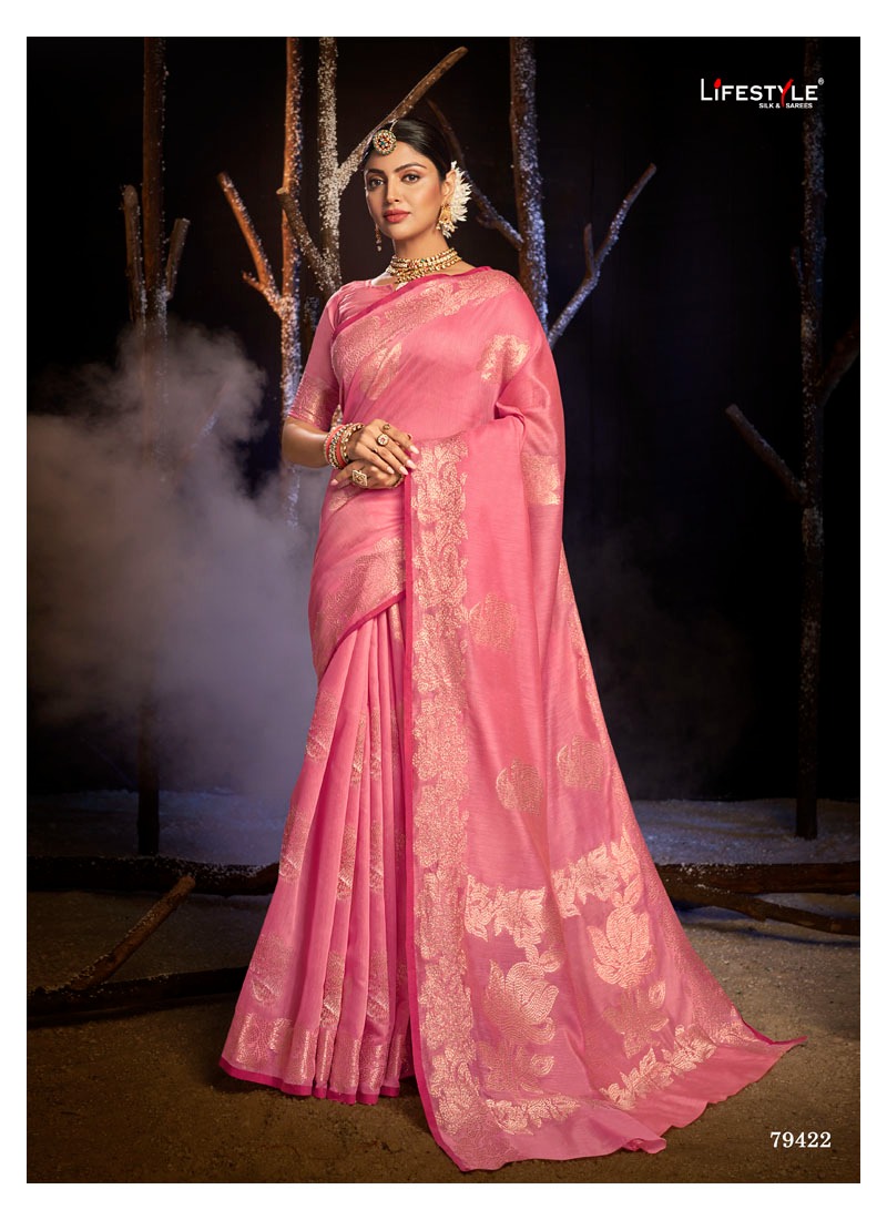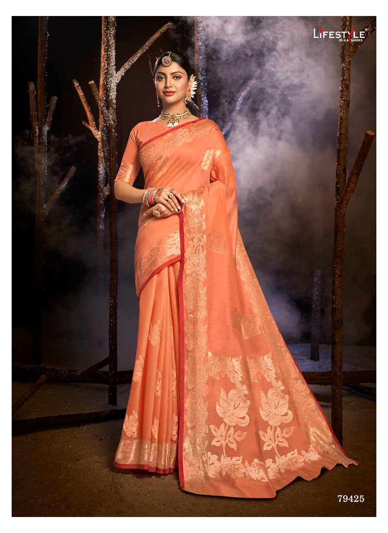 Brand = *LIFESTYLE* Catalog = *ZARINA* Volume =1 Fabric = *CHANDERI SILK* Packing = BOX Ex-mill Rate = 1041 per pcs Set to set Cut/Length = 6.4 FANCY CHANDERI SILK DIAMOND BUTTI RICH PALLU SAREE Packing : Today |