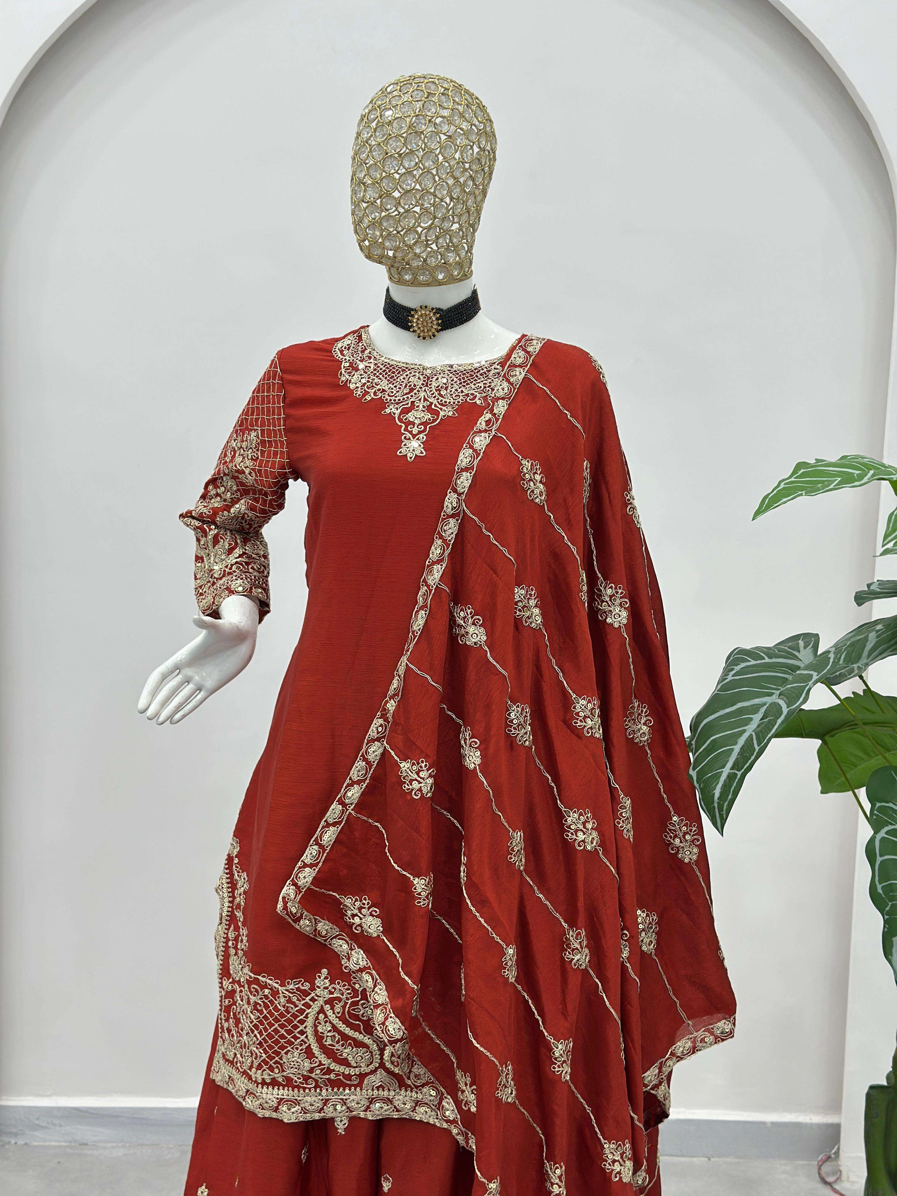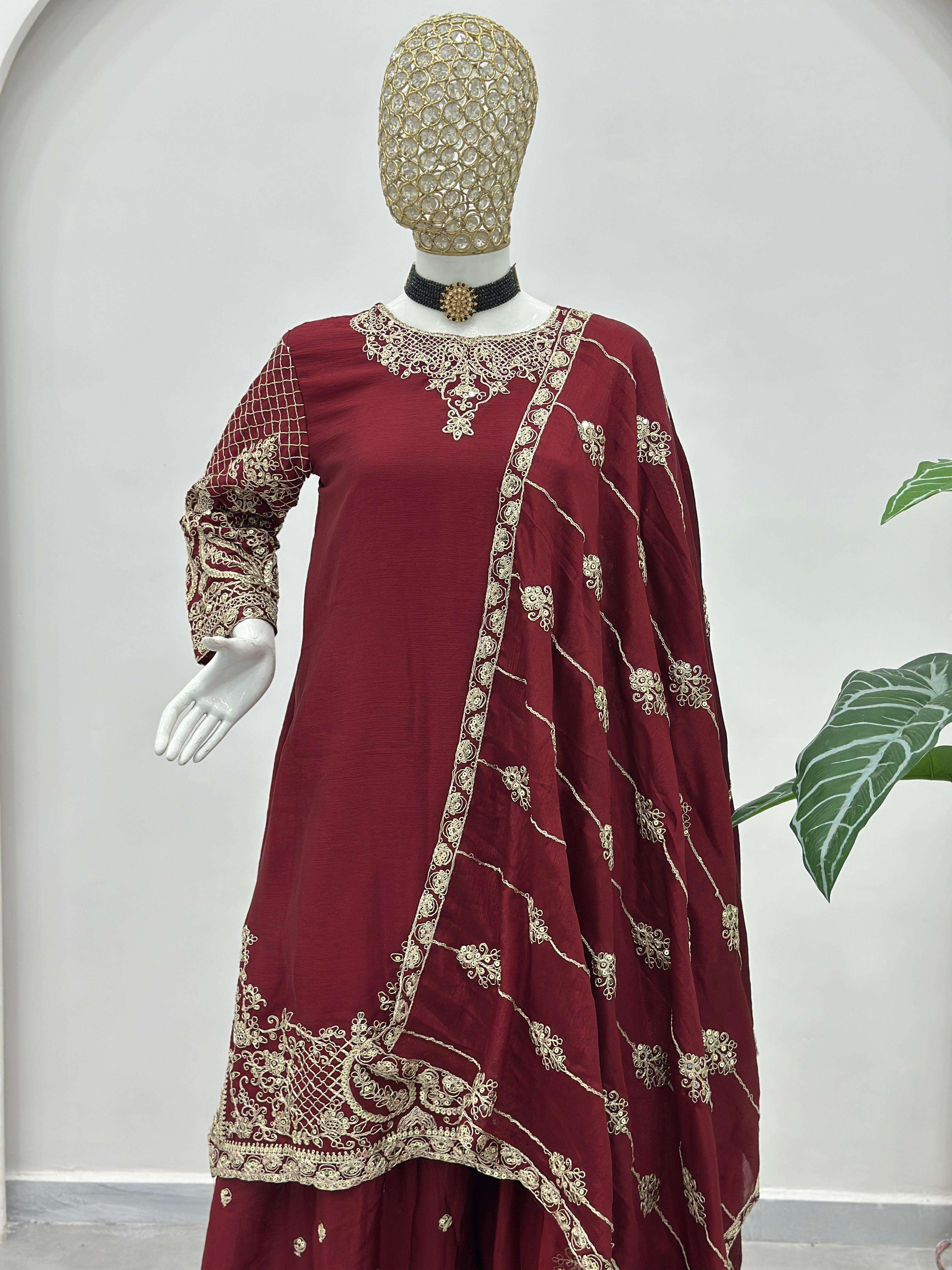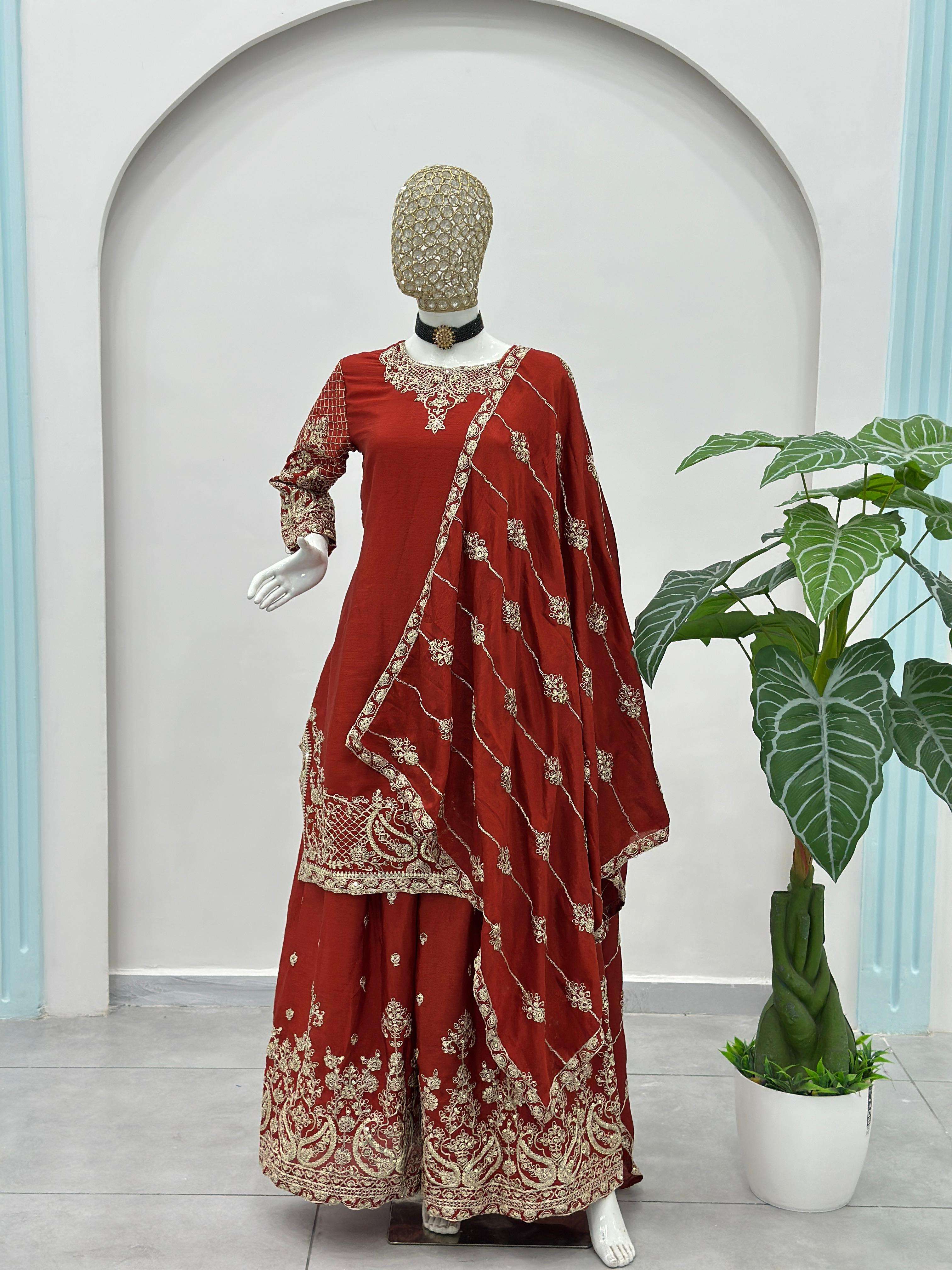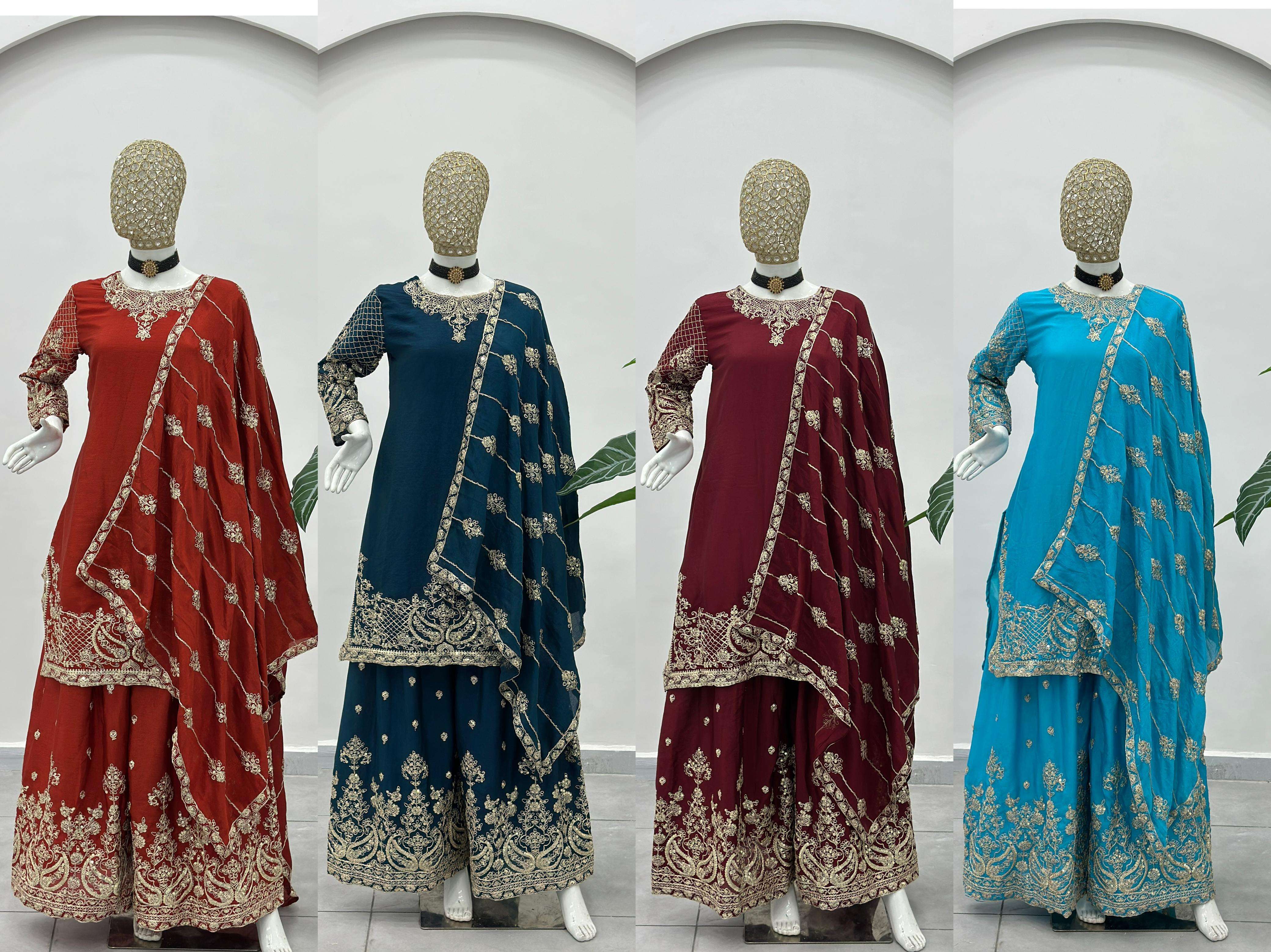 ✨ Elevate your festive style with these stunning embroidered sharara suits – a perfect blend of grace, tradition, and modern charm. Whether it’s a wedding, festive gathering, or celebration, these rich hues of designed to make you shine. 💫