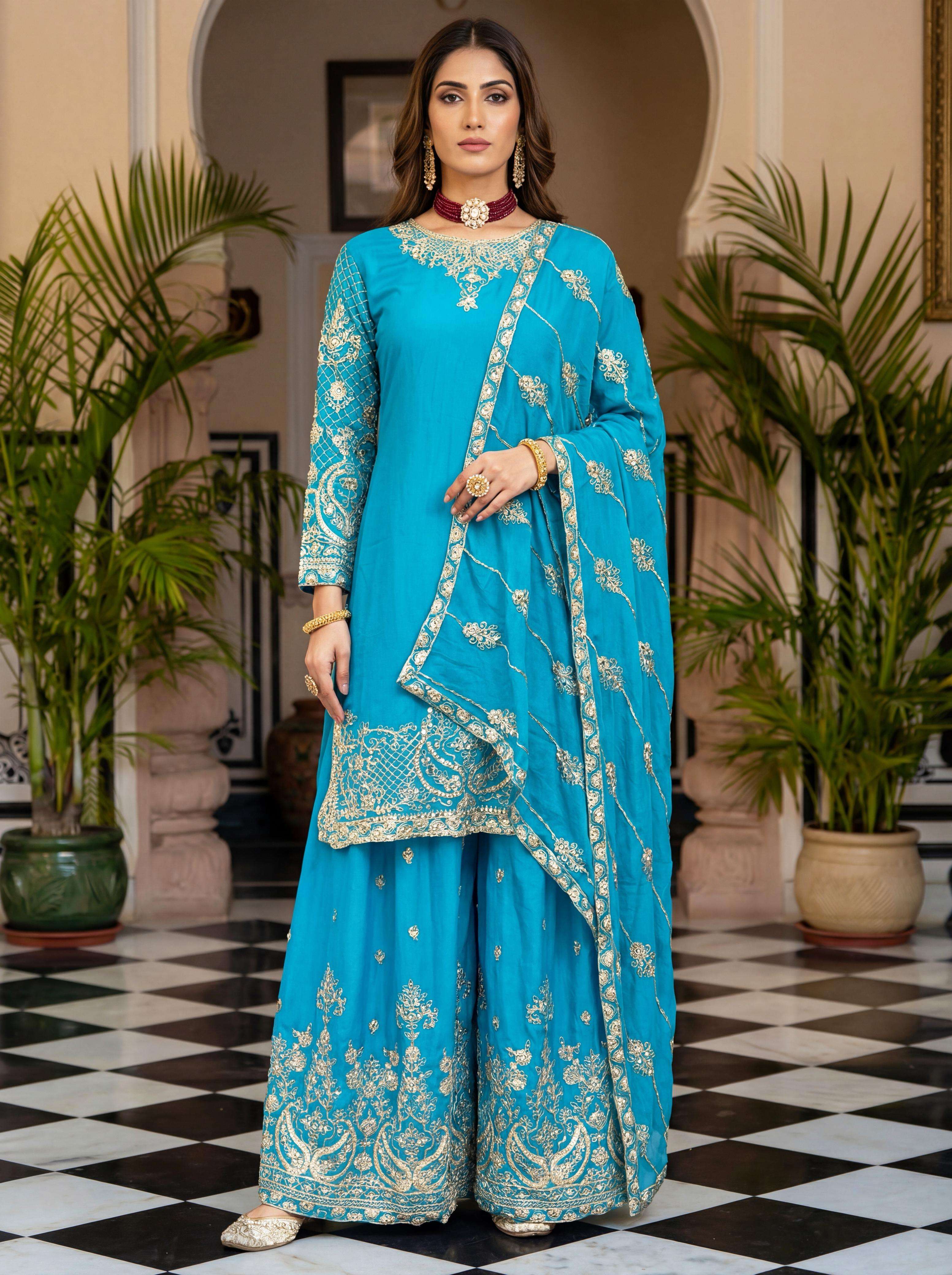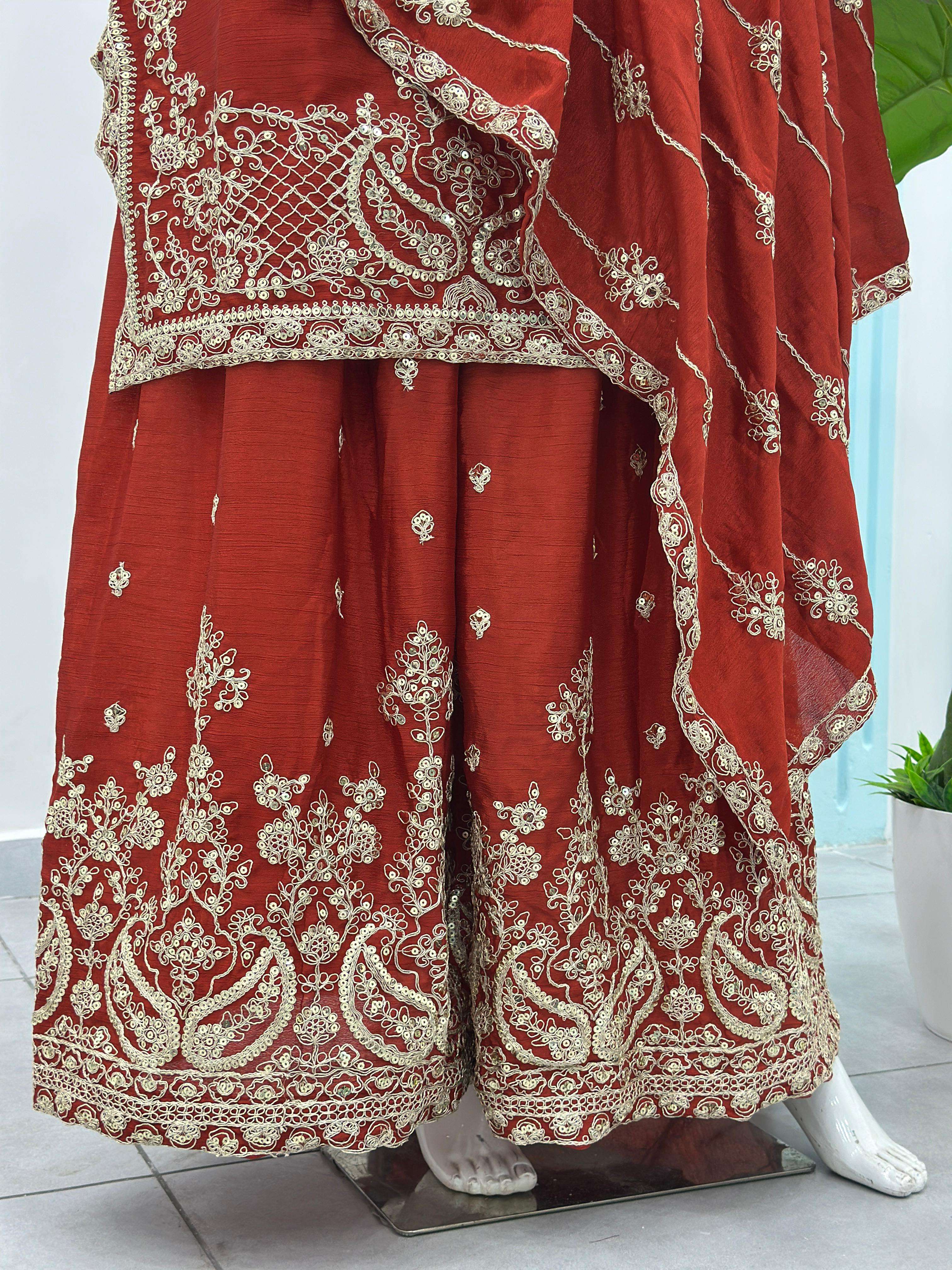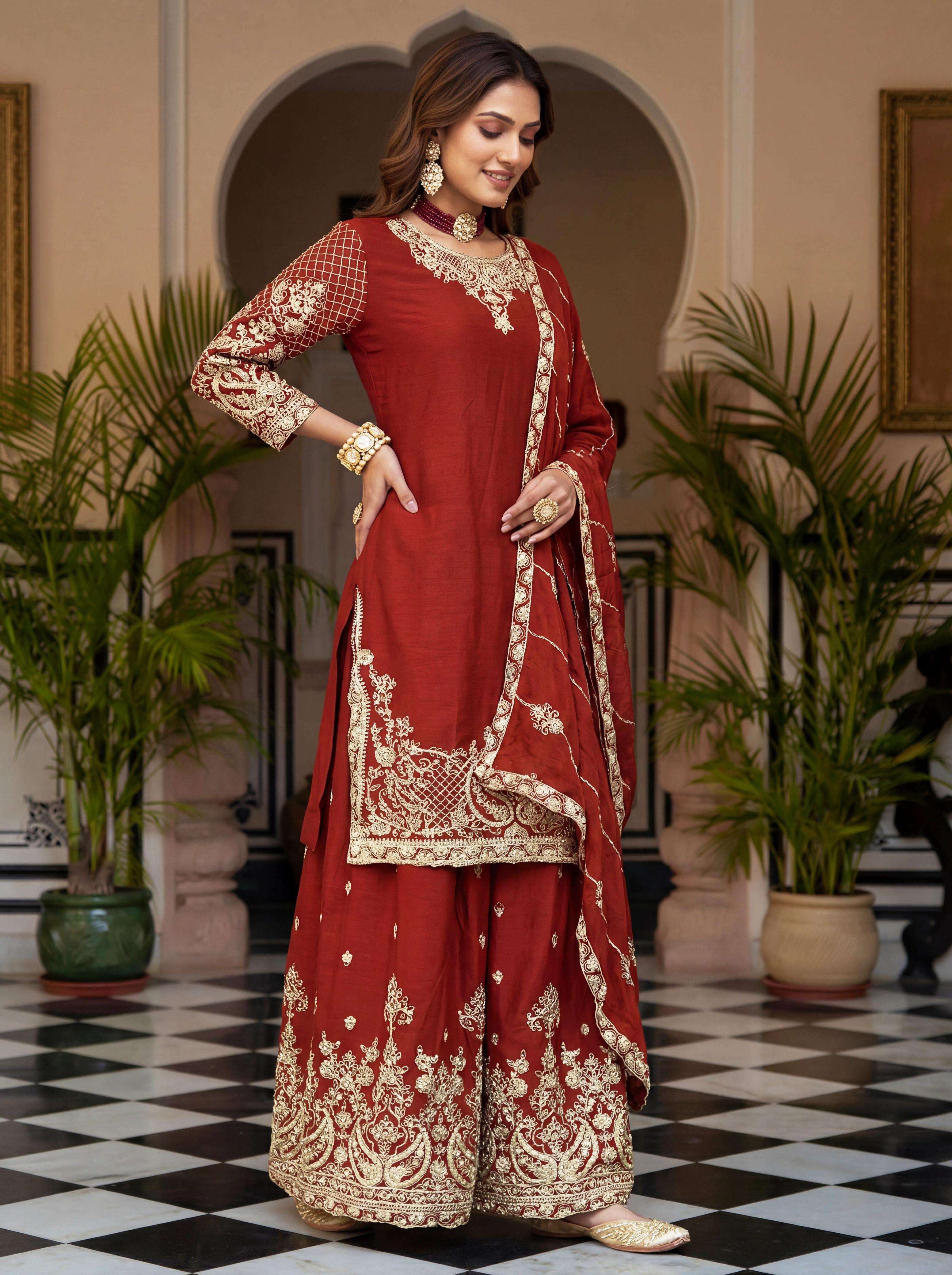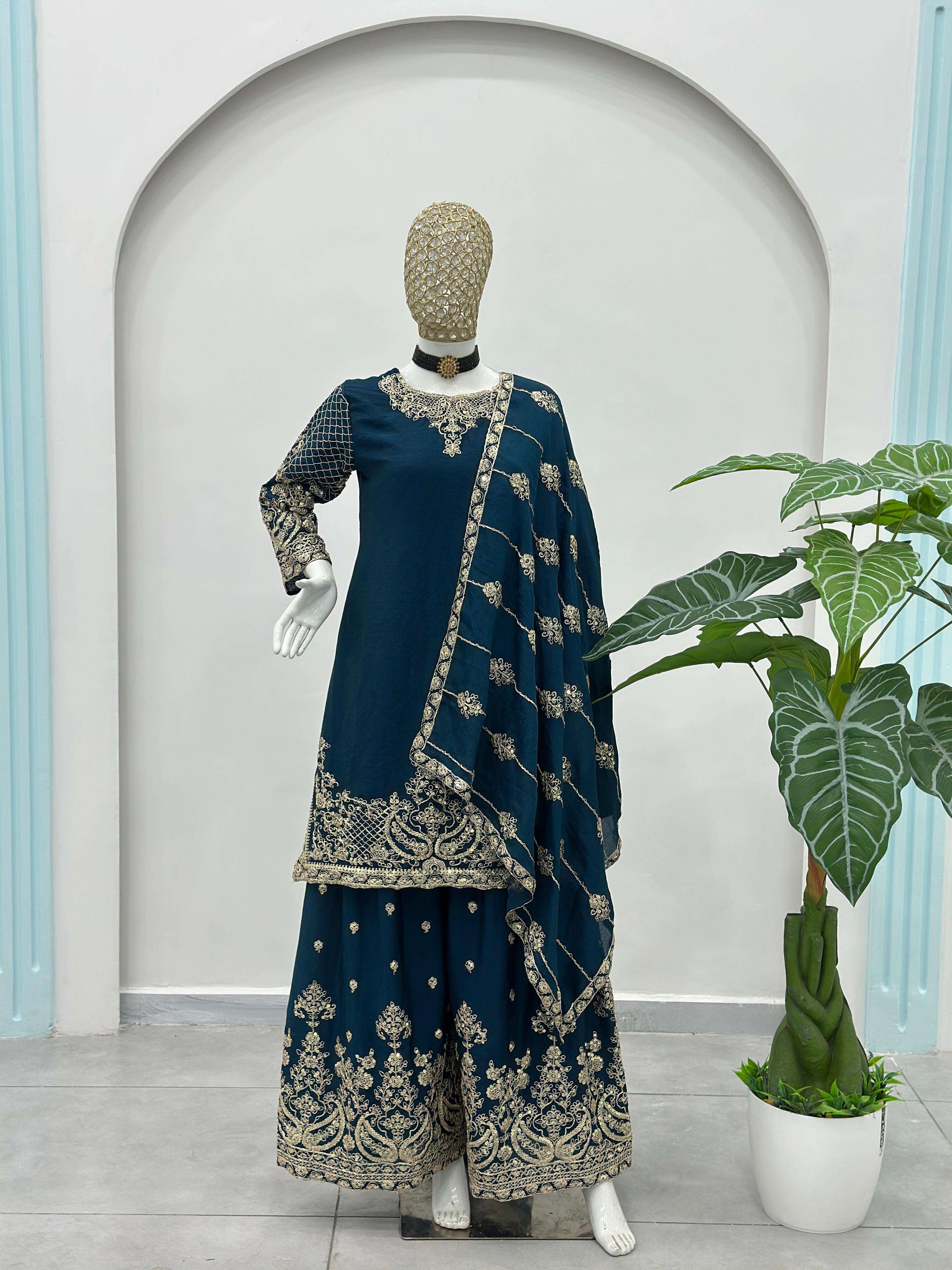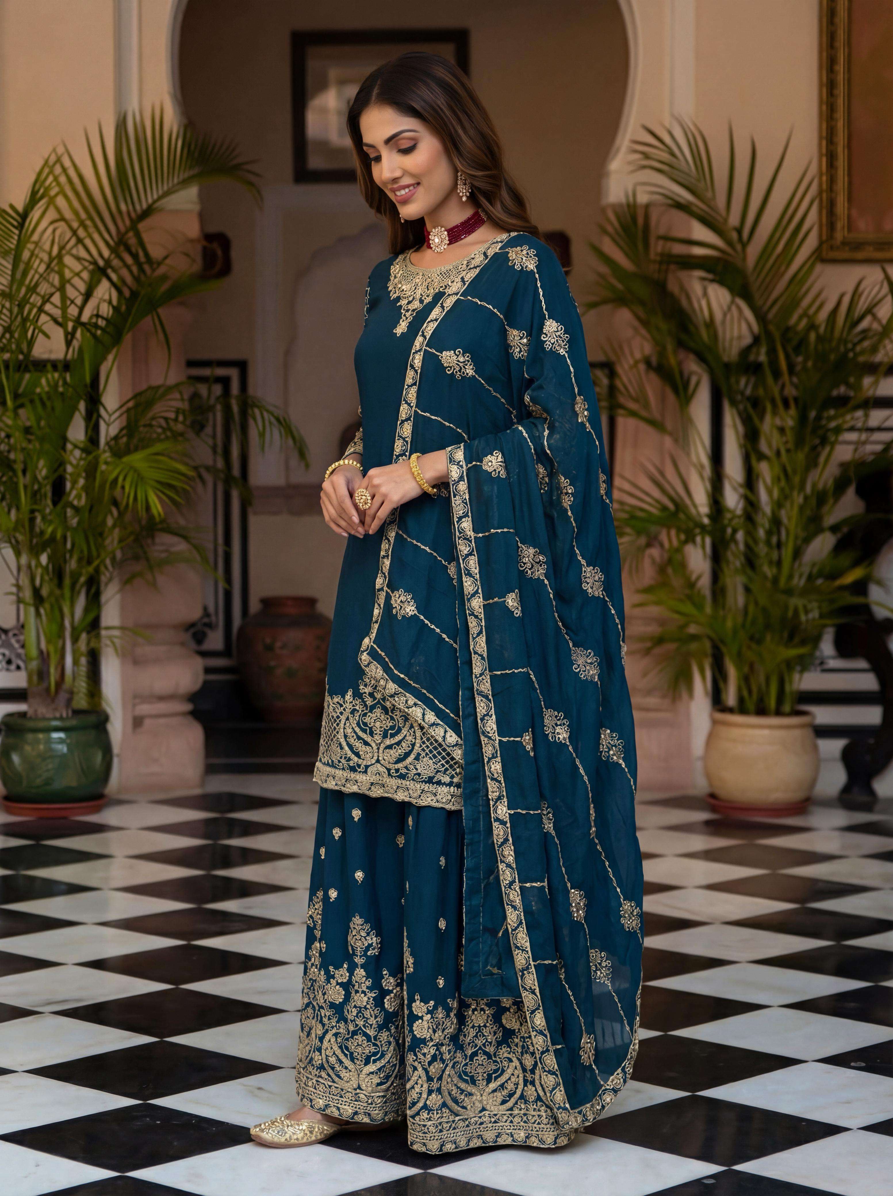 ✨ Elevate your festive style with these stunning embroidered sharara suits – a perfect blend of grace, tradition, and modern charm. Whether it’s a wedding, festive gathering, or celebration, these rich hues of designed to make you shine. 💫