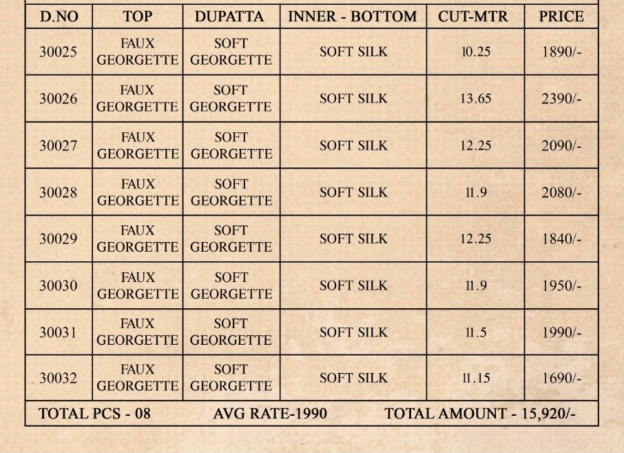 Buy Online Zarkan Series 30025 To 30032 By Raazi Suit Single And Set Stockiest And Supplier From Surat 8 Pcs of Full Catalogue at Wholesale Price. Looking for Zarkan Series 30025 To 30032 By Raazi Suit Single And Set Stockiest And Supplier From Surat Full Catalouge at Best Price? Buy Now Zarkan Series 30025 To 30032 By Raazi Suit Single And Set Stockiest And Supplier From Surat at Wholesale Rate of Rs 15920 with Total 8 Pcs from authroized dealer and supplier of Brand. Cost of Each piece is just only Rs 1990 which is very low and affordable price to resale the product in your retail store ,This is Surat based Wholesale Supplier & Dealer of Brand. Click on Brand name to Know more about Brand's products.Call or Whatsapp on 9898838984 for booking or enquiry