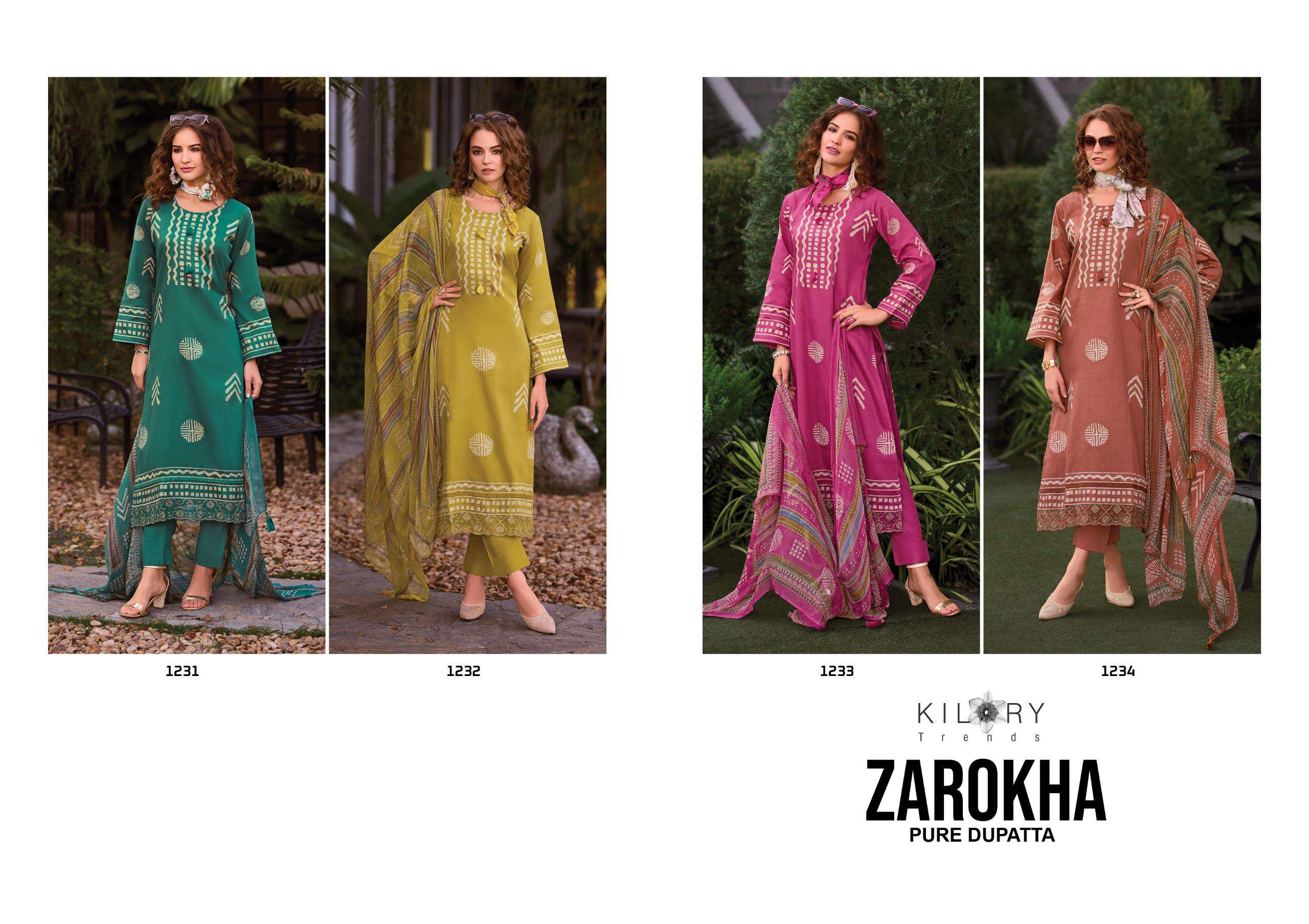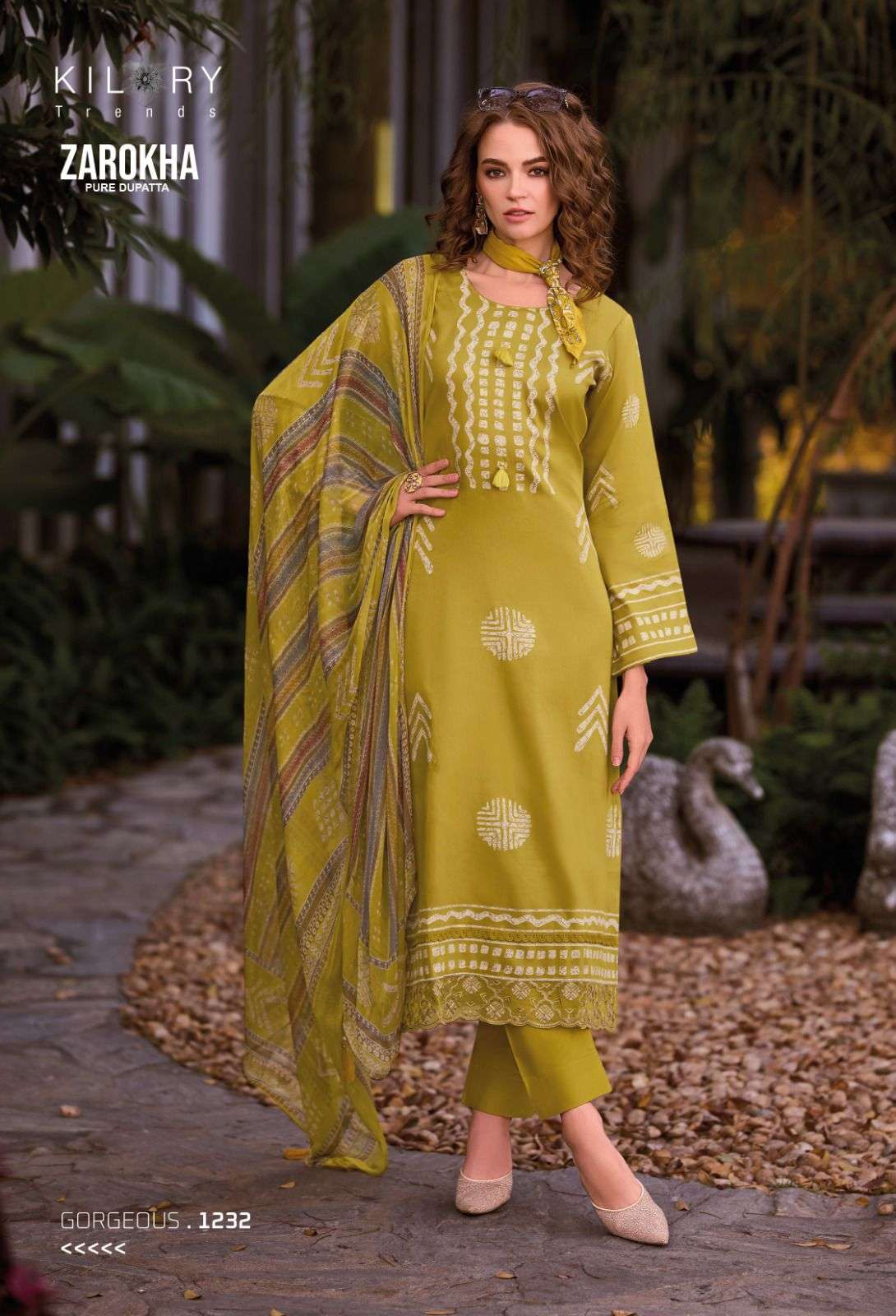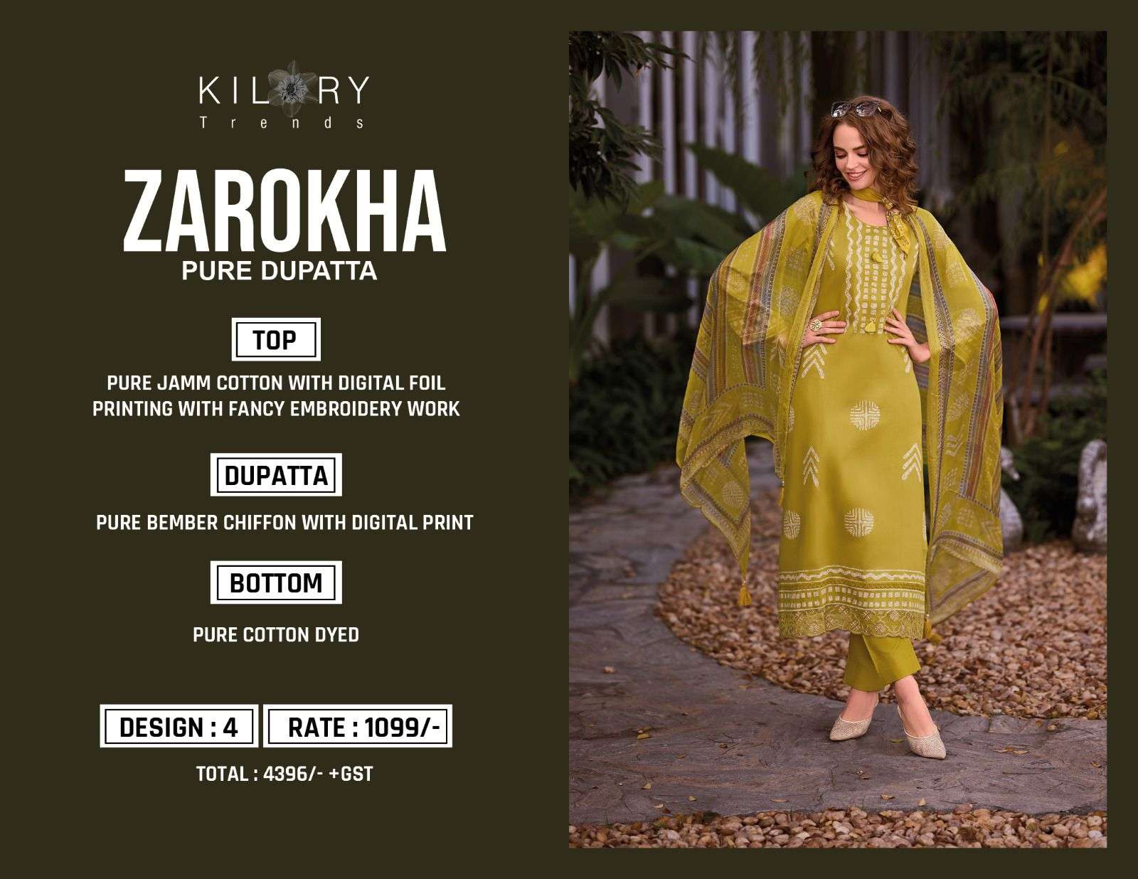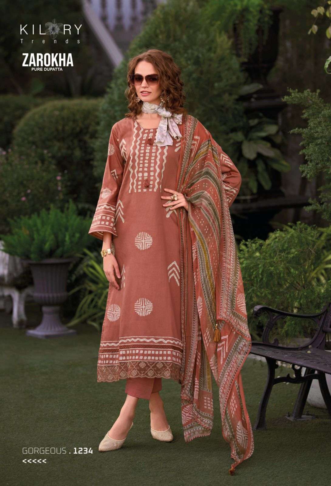 Buy Online Zarokha by KILORY TRENDS JAMM COTTON suit collection manufacturer surat 4 Pcs of Full Catalogue at Wholesale Price. Looking for Zarokha by KILORY TRENDS JAMM COTTON suit collection manufacturer surat Full Catalouge at Best Price? Buy Now Zarokha by KILORY TRENDS JAMM COTTON suit collection manufacturer surat at Wholesale Rate of Rs 4396 with Total 4 Pcs from authroized dealer and supplier of Kilory Trendz Brand. Cost of Each piece is just only Rs 1099 which is very low and affordable price to resale the product in your retail store ,This is Surat based Wholesale Supplier & Dealer of Kilory Trendz Brand. Click on Brand name to Know more about Kilory Trendz Brand's products.Call or Whatsapp on 9898838984 for booking or enquiry