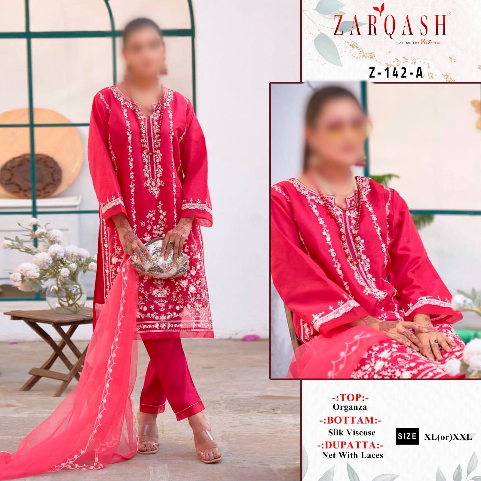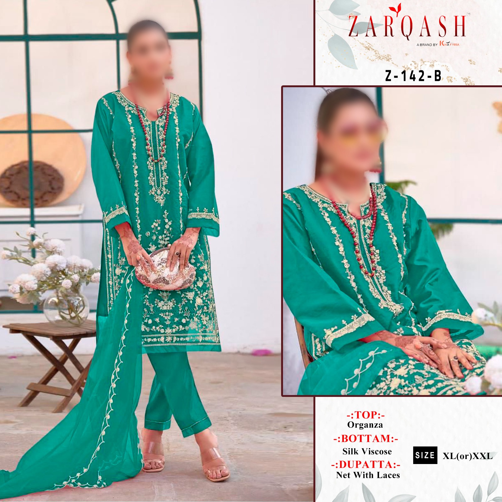 Buy Online Zarqash Z 142 Organza Pakistani Concept Single Avilable Wholesaler Supplier Surat 4 Pcs of Full Catalogue at Wholesale Price. Looking for Zarqash Z 142 Organza Pakistani Concept Single Avilable Wholesaler Supplier Surat Full Catalouge at Best Price? Buy Now Zarqash Z 142 Organza Pakistani Concept Single Avilable Wholesaler Supplier Surat at Wholesale Rate of Rs 5000 with Total 4 Pcs from authroized dealer and supplier of Brand. Cost of Each piece is just only Rs 1250 which is very low and affordable price to resale the product in your retail store ,This is Surat based Wholesale Supplier & Dealer of Brand. Click on Brand name to Know more about Brand's products.Call or Whatsapp on 9898838984 for booking or enquiry