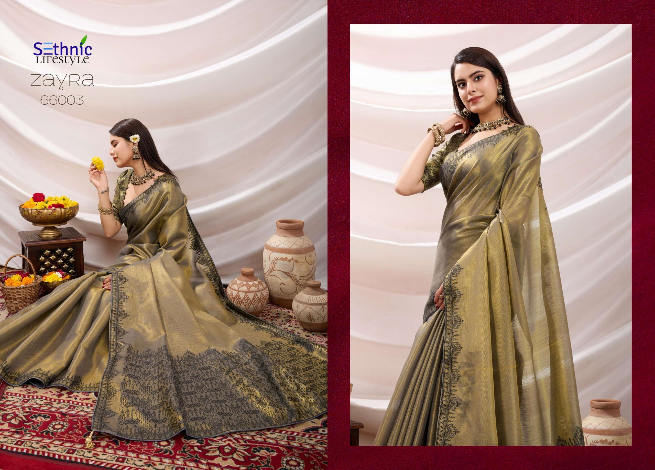 Zayra by Sethnic Lifestyle linen tissue saree collection manufacturer surat