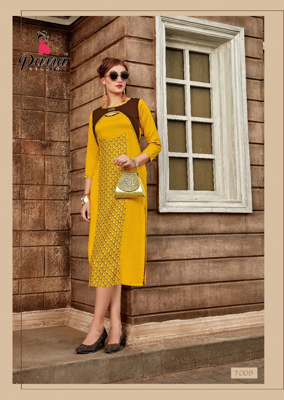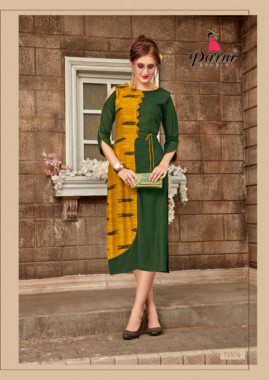 Buy Online Zeenat By Parra Studio 7001 Series Fancy Reyon Kurti Collection Wholesaler Surat 8 Pcs of Full Catalogue at Wholesale Price. Looking for Zeenat By Parra Studio 7001 Series Fancy Reyon Kurti Collection Wholesaler Surat Full Catalouge at Best Price? Buy Now Zeenat By Parra Studio 7001 Series Fancy Reyon Kurti Collection Wholesaler Surat at Wholesale Rate of Rs 3192 with Total 8 Pcs from authroized dealer and supplier of Parra Studio Brand. Cost of Each piece is just only Rs 399 which is very low and affordable price to resale the product in your retail store ,This is Surat based Wholesale Supplier & Dealer of Parra Studio Brand. Click on Brand name to Know more about Parra Studio Brand's products.Call or Whatsapp on 9898838984 for booking or enquiry