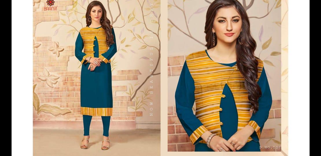 Buy Online Zeenat By Rani Baanvi 101 Series Fancy Reyon Slub Kurti Catlog Wholesaler Surat 7 Pcs of Full Catalogue at Wholesale Price. Looking for Zeenat By Rani Baanvi 101 Series Fancy Reyon Slub Kurti Catlog Wholesaler Surat Full Catalouge at Best Price? Buy Now Zeenat By Rani Baanvi 101 Series Fancy Reyon Slub Kurti Catlog Wholesaler Surat at Wholesale Rate of Rs 3157 with Total 7 Pcs from authroized dealer and supplier of RANI Brand. Cost of Each piece is just only Rs 451 which is very low and affordable price to resale the product in your retail store ,This is Surat based Wholesale Supplier & Dealer of RANI Brand. Click on Brand name to Know more about RANI Brand's products.Call or Whatsapp on 9898838984 for booking or enquiry