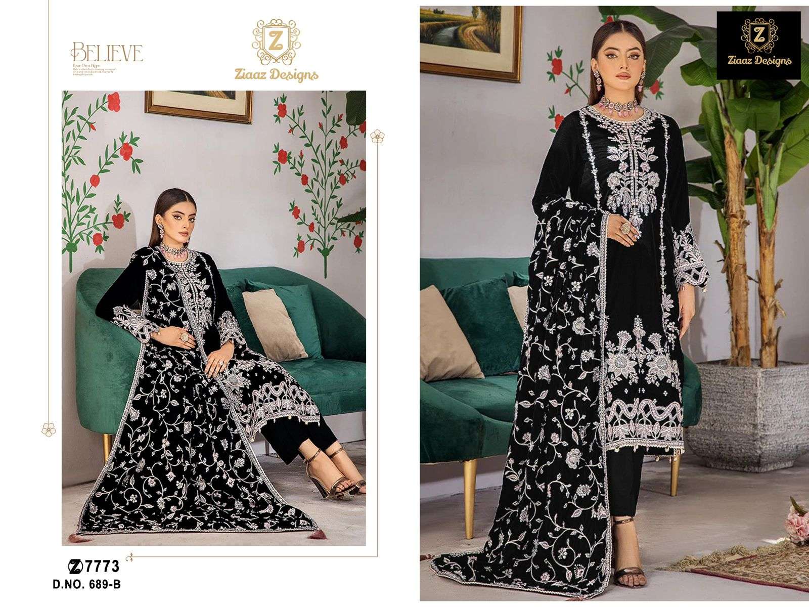 Ziaaz Designs by velvet embroidered full size dupattas beautiful suit collection manufacturer surat code 689 colours semi stitched