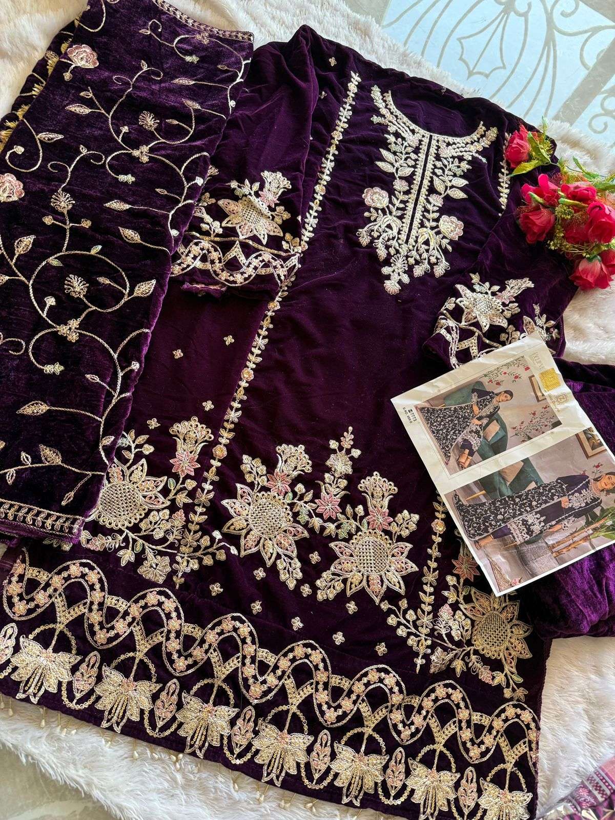 Velvet Semi stitched outfit with beautiful embroidery ❤️❤️❤️ velvet unstitch bottoms