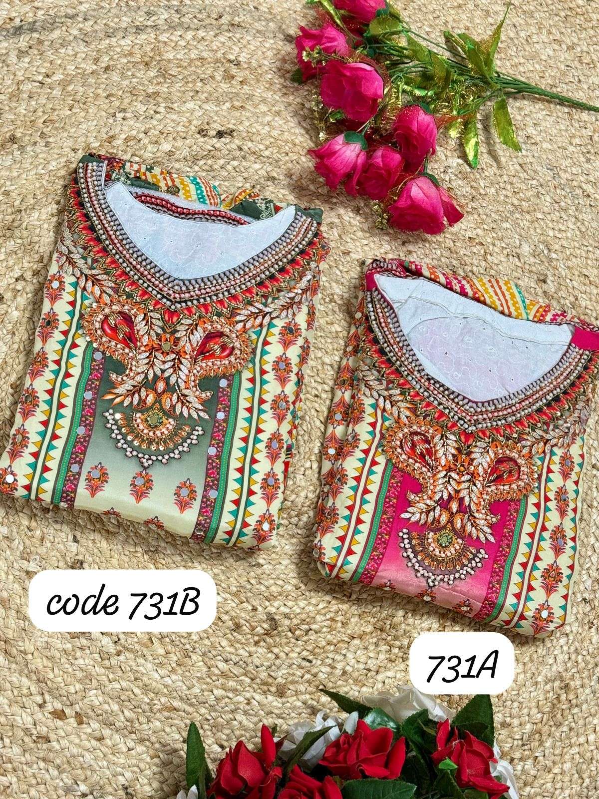 Buy Online Ziaaz Designs code 731A and B kaftans kurti manufacturer surat 2 Pcs of Full Catalogue at Wholesale Price. Looking for Ziaaz Designs code 731A and B kaftans kurti manufacturer surat Full Catalouge at Best Price? Buy Now Ziaaz Designs code 731A and B kaftans kurti manufacturer surat at Wholesale Rate of Rs 3300 with Total 2 Pcs from authroized dealer and supplier of ZIAAZ Brand. Cost of Each piece is just only Rs 1650 which is very low and affordable price to resale the product in your retail store ,This is Surat based Wholesale Supplier & Dealer of ZIAAZ Brand. Click on Brand name to Know more about ZIAAZ Brand's products.Call or Whatsapp on 9898838984 for booking or enquiry
