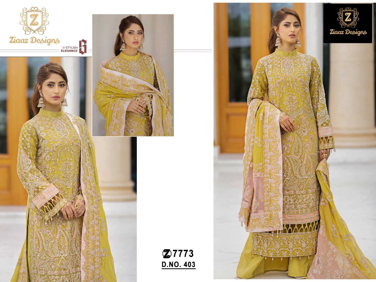 Buy Online Ziaaz Designs D No 403 Georgette Embroidered Collection Manufacturer Surat 5 Pcs of Full Catalogue at Wholesale Price. Looking for Ziaaz Designs D No 403 Georgette Embroidered Collection Manufacturer Surat Full Catalouge at Best Price? Buy Now Ziaaz Designs D No 403 Georgette Embroidered Collection Manufacturer Surat at Wholesale Rate of Rs 7750 with Total 5 Pcs from authroized dealer and supplier of Brand. Cost of Each piece is just only Rs 1550 which is very low and affordable price to resale the product in your retail store ,This is Surat based Wholesale Supplier & Dealer of Brand. Click on Brand name to Know more about Brand's products.Call or Whatsapp on 9898838984 for booking or enquiry