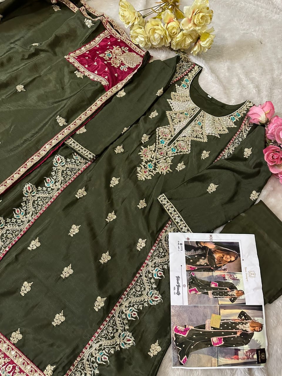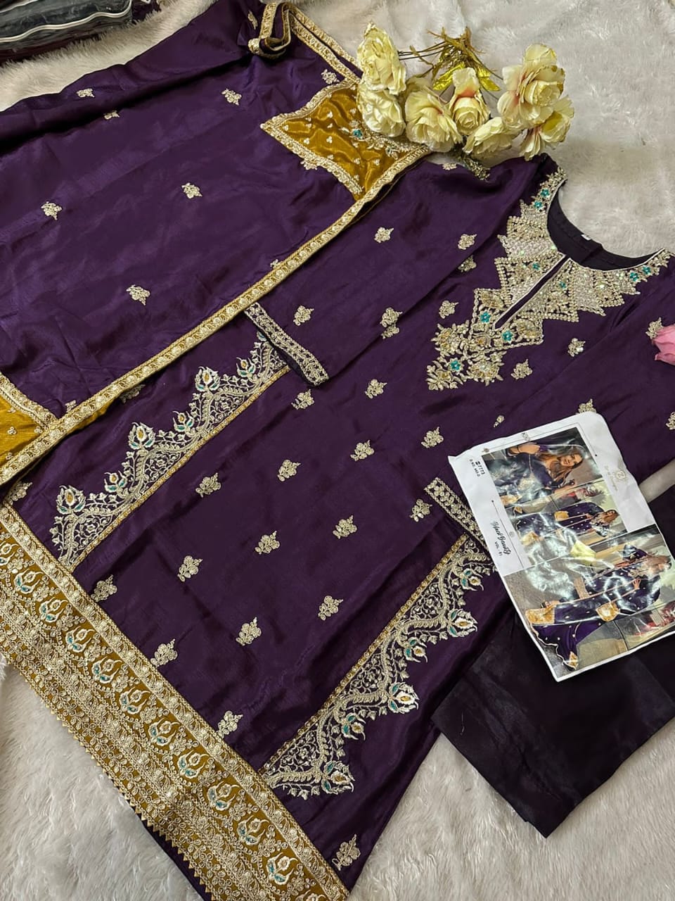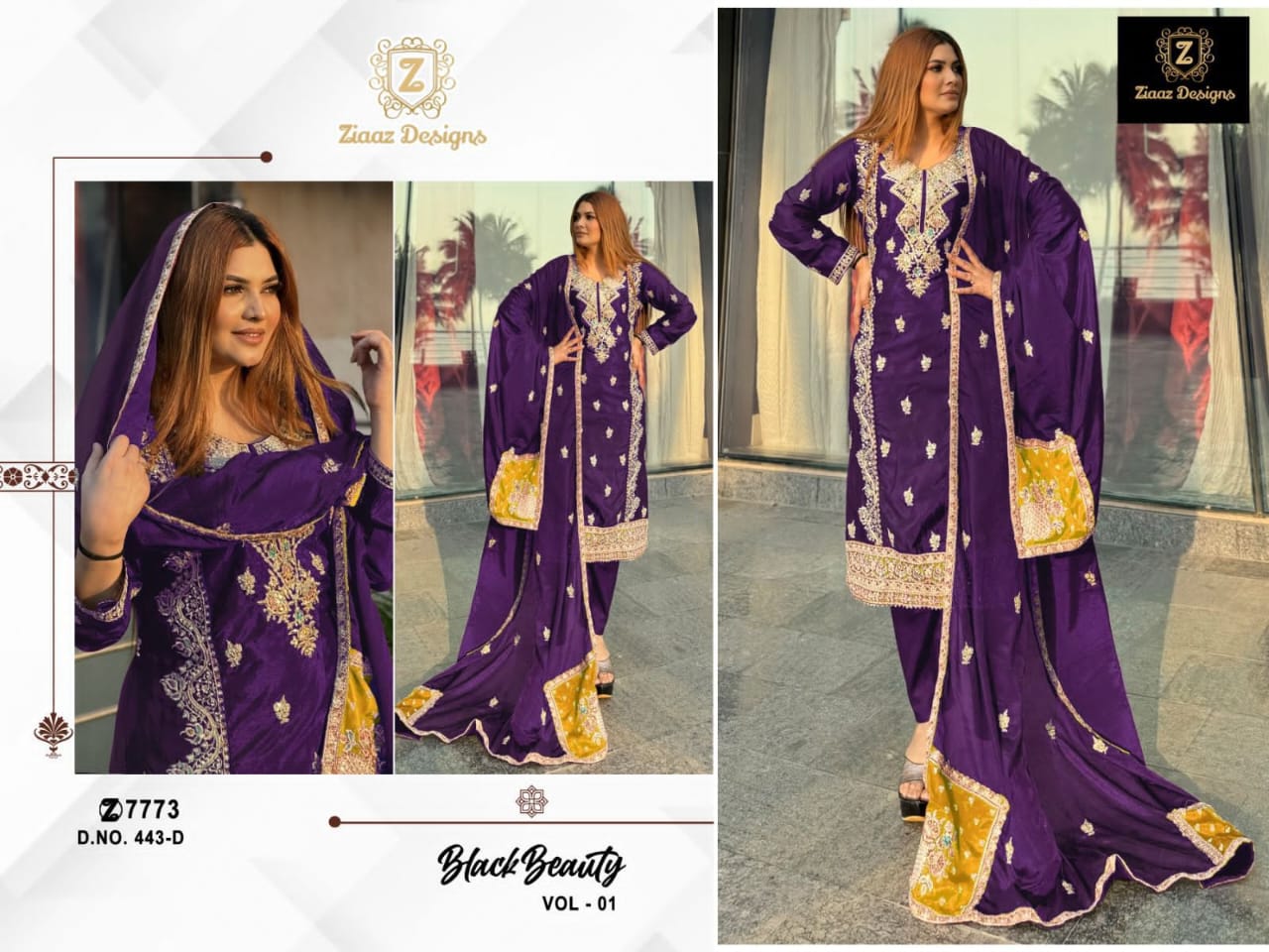 Ziaaz Designs D No 443 Chinon Embroidery Work Designer Suits