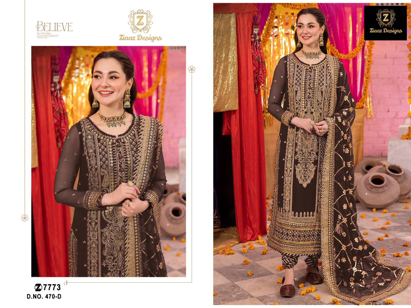 Buy Online Ziaaz Designs D No 470 Georgette Pakistani Suits 4 Pcs of Full Catalogue at Wholesale Price. Looking for Ziaaz Designs D No 470 Georgette Pakistani Suits Full Catalouge at Best Price? Buy Now Ziaaz Designs D No 470 Georgette Pakistani Suits at Wholesale Rate of Rs 4800 with Total 4 Pcs from authroized dealer and supplier of Brand. Cost of Each piece is just only Rs 1200 which is very low and affordable price to resale the product in your retail store ,This is Surat based Wholesale Supplier & Dealer of Brand. Click on Brand name to Know more about Brand's products.Call or Whatsapp on 9898838984 for booking or enquiry