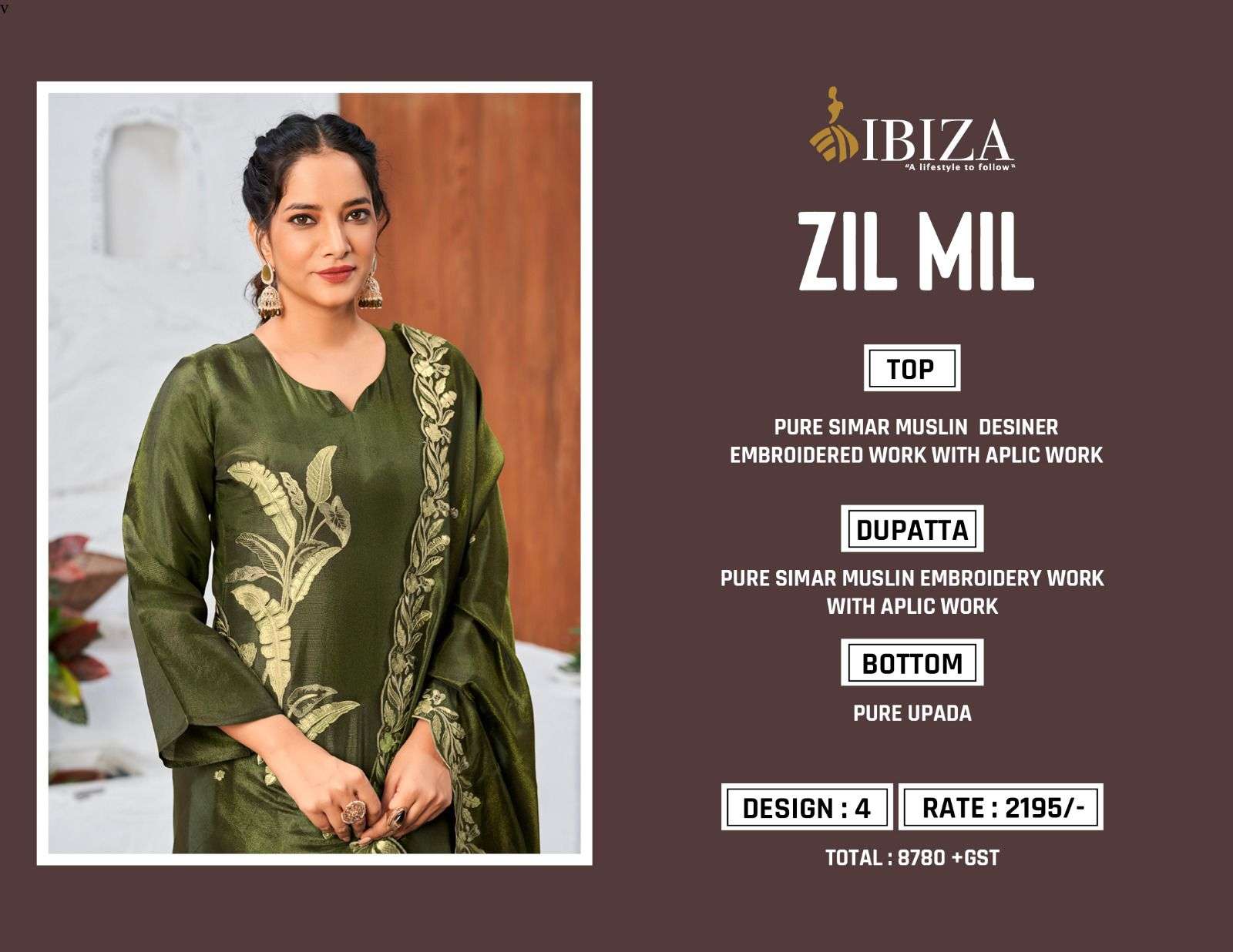 Buy Online Zil mili by IBIZA lifestyle desiner suit collection manufacturer surat 4 Pcs of Full Catalogue at Wholesale Price. Looking for Zil mili by IBIZA lifestyle desiner suit collection manufacturer surat Full Catalouge at Best Price? Buy Now Zil mili by IBIZA lifestyle desiner suit collection manufacturer surat at Wholesale Rate of Rs 8780 with Total 4 Pcs from authroized dealer and supplier of BRAND'S Brand. Cost of Each piece is just only Rs 2195 which is very low and affordable price to resale the product in your retail store ,This is Surat based Wholesale Supplier & Dealer of BRAND'S Brand. Click on Brand name to Know more about BRAND'S Brand's products.Call or Whatsapp on 9898838984 for booking or enquiry