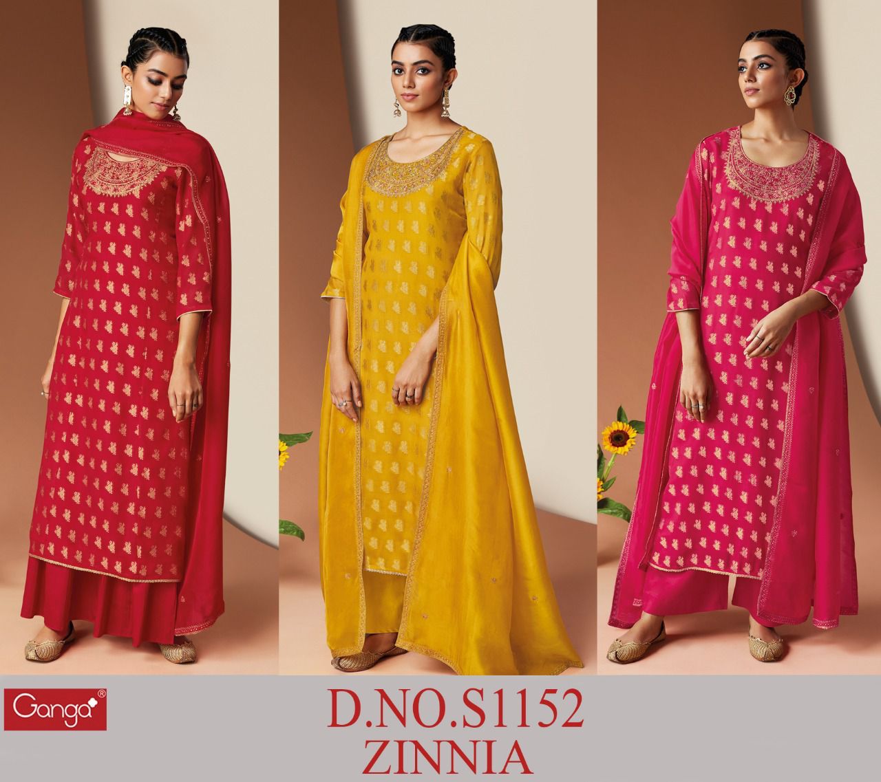 Buy Online Zinnia 1152 By Ganga Designer Premium Suit Wholesale Supplier Traders In Surat 3 Pcs of Full Catalogue at Wholesale Price. Looking for Zinnia 1152 By Ganga Designer Premium Suit Wholesale Supplier Traders In Surat Full Catalouge at Best Price? Buy Now Zinnia 1152 By Ganga Designer Premium Suit Wholesale Supplier Traders In Surat at Wholesale Rate of Rs 0 with Total 3 Pcs from authroized dealer and supplier of GANGA Brand. Cost of Each piece is just only Rs 0 which is very low and affordable price to resale the product in your retail store ,This is Surat based Wholesale Supplier & Dealer of GANGA Brand. Click on Brand name to Know more about GANGA Brand's products.Call or Whatsapp on 9898838984 for booking or enquiry