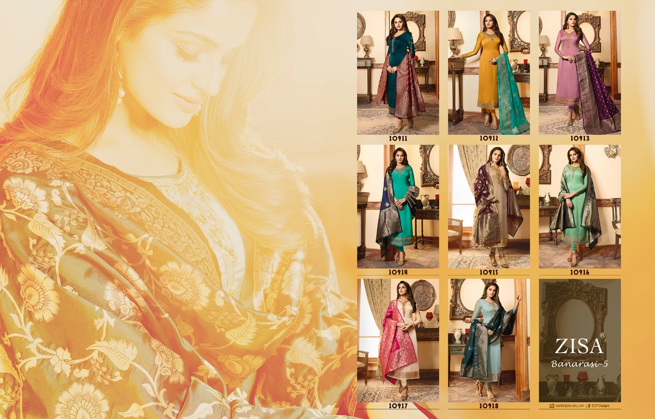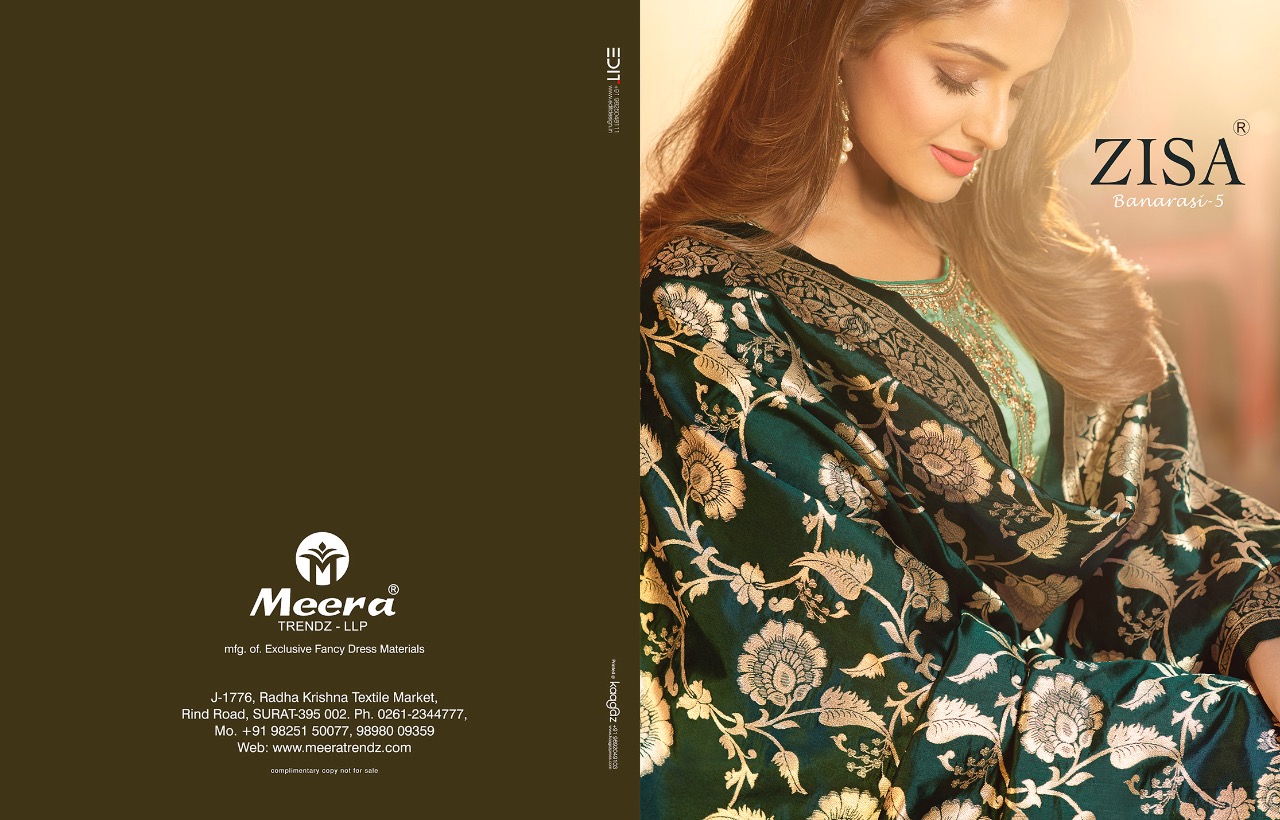 Buy Online Zisa Banarasi 5 By Meera Trendz Series 10911 To 10918 Designer Party Wear Suits Wholesale Supplier Gujarat 8 Pcs of Full Catalogue at Wholesale Price. Looking for Zisa Banarasi 5 By Meera Trendz Series 10911 To 10918 Designer Party Wear Suits Wholesale Supplier Gujarat Full Catalouge at Best Price? Buy Now Zisa Banarasi 5 By Meera Trendz Series 10911 To 10918 Designer Party Wear Suits Wholesale Supplier Gujarat at Wholesale Rate of Rs 9360 with Total 8 Pcs from authroized dealer and supplier of MEERA TRENDZ Brand. Cost of Each piece is just only Rs 1170 which is very low and affordable price to resale the product in your retail store ,This is Surat based Wholesale Supplier & Dealer of MEERA TRENDZ Brand. Click on Brand name to Know more about MEERA TRENDZ Brand's products.Call or Whatsapp on 9898838984 for booking or enquiry