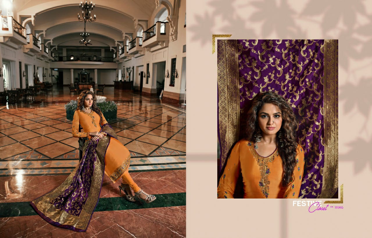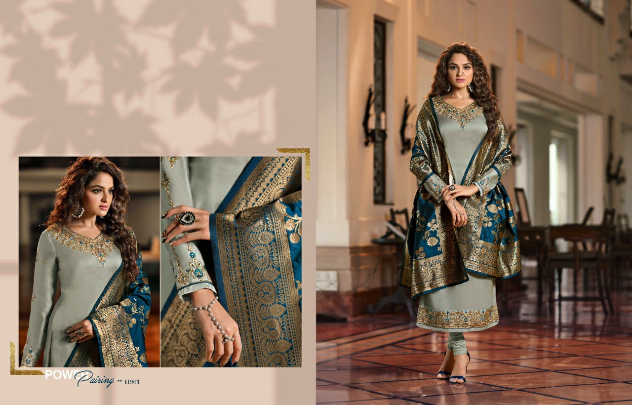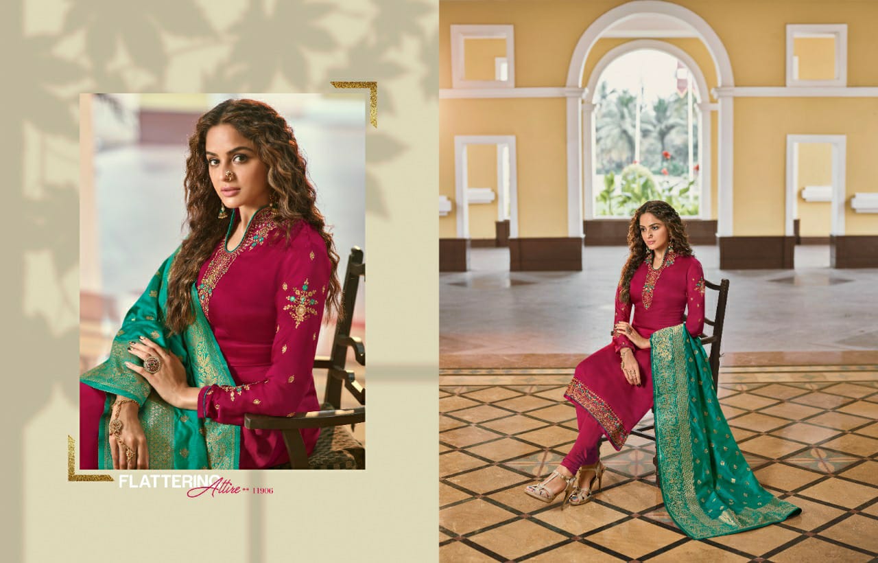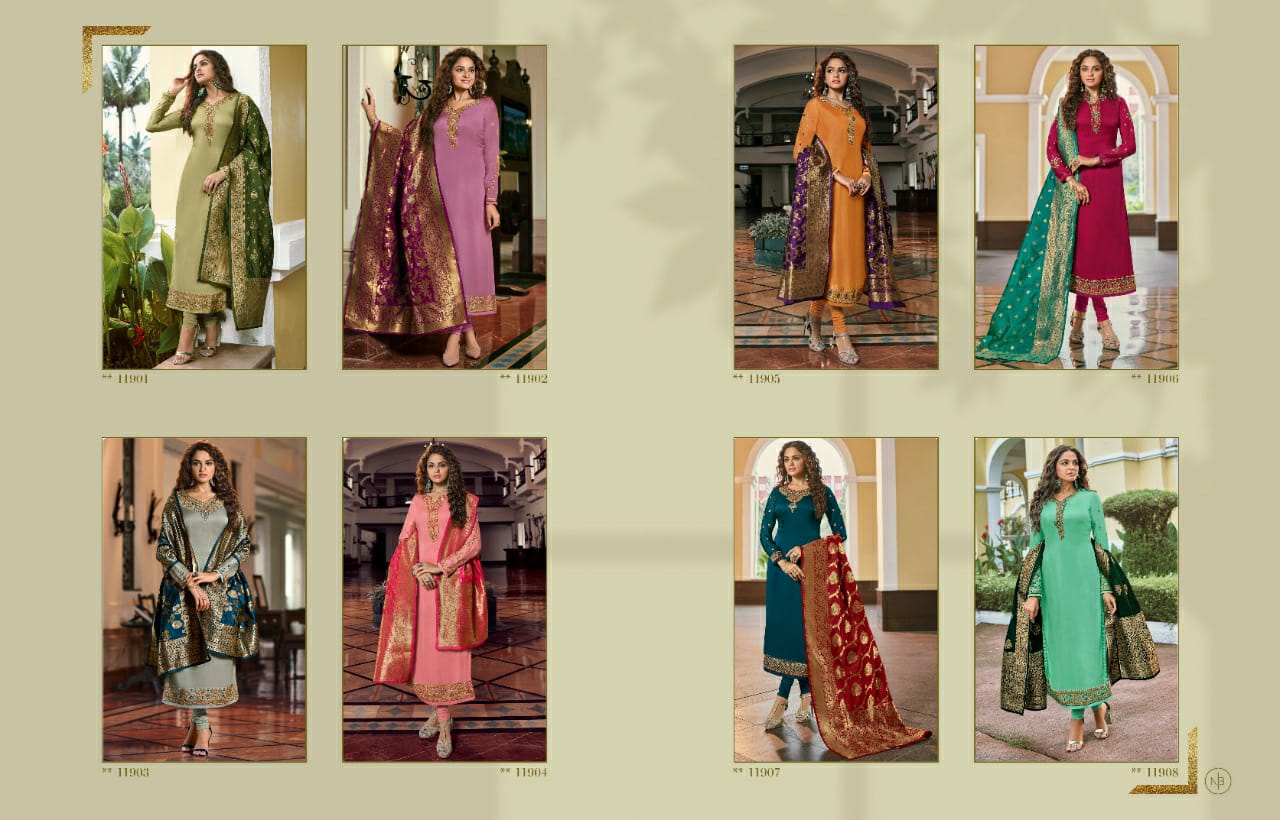 *Brand :* Meera Trendz LLP *Catalog Name :* Zisa *Price :* ?1125 *Piece :* 8 *Total Price :* 9000 ( GST Extra ) *Size :* Unstitched *Fabric :* satin jorgget *Availibility :* On Booking |
