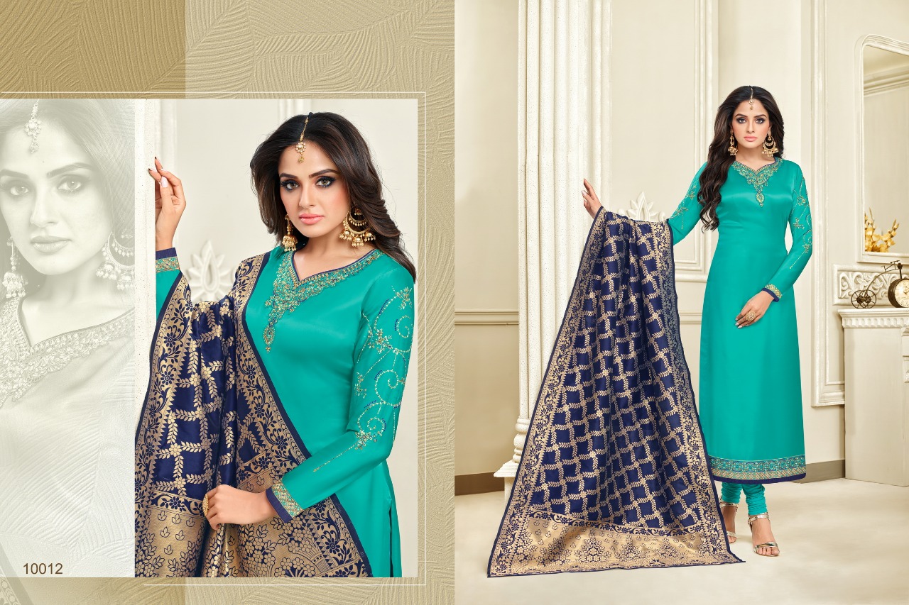 *ZISA* _Volume-51 Hitlist_ Satin georget top with embroidery work with banarsi heavy dupatta and embroidered sleeve and santoon bottom *Average rate-1186/-* Only set to set Delivery 2-3 days GST 5% Applicable. |
