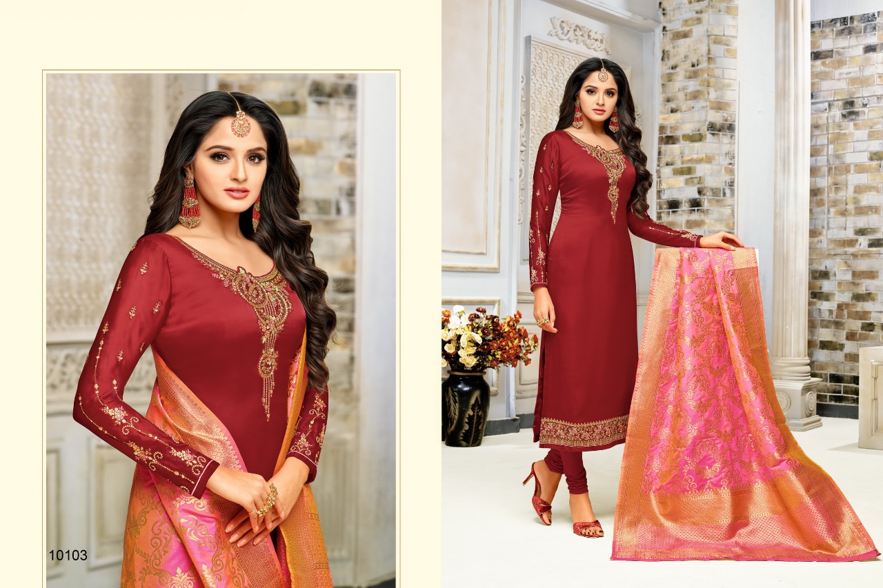 Buy Online Zisa Vol 52 Banarasi 2 By Meera Trendz 10101 Series Fancy Party Wear Salwar Kameez Catlog Wholesale Dealer Surat 8 Pcs of Full Catalogue at Wholesale Price. Looking for Zisa Vol 52 Banarasi 2 By Meera Trendz 10101 Series Fancy Party Wear Salwar Kameez Catlog Wholesale Dealer Surat Full Catalouge at Best Price? Buy Now Zisa Vol 52 Banarasi 2 By Meera Trendz 10101 Series Fancy Party Wear Salwar Kameez Catlog Wholesale Dealer Surat at Wholesale Rate of Rs 9560 with Total 8 Pcs from authroized dealer and supplier of MEERA TRENDZ Brand. Cost of Each piece is just only Rs 1195 which is very low and affordable price to resale the product in your retail store ,This is Surat based Wholesale Supplier & Dealer of MEERA TRENDZ Brand. Click on Brand name to Know more about MEERA TRENDZ Brand's products.Call or Whatsapp on 9898838984 for booking or enquiry