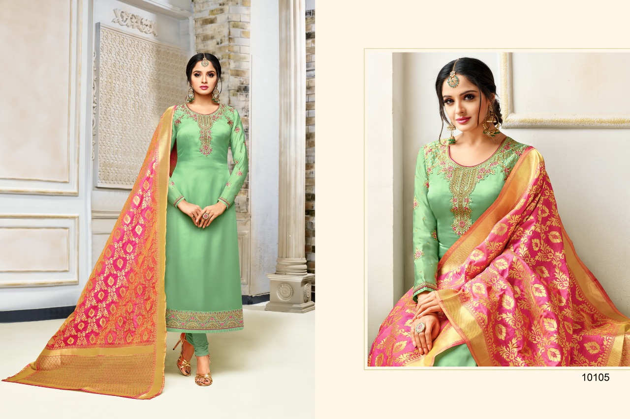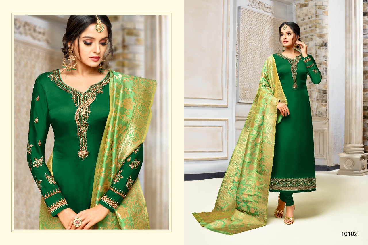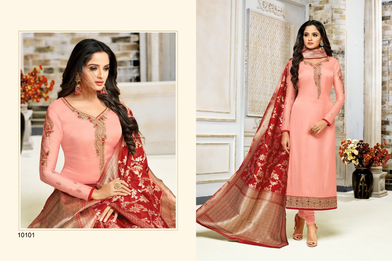 Zisa Vol 52 Banarasi 2 By Meera Trendz 10101 Series Fancy Party Wear Salwar Kameez Catlog Wholesale Dealer Surat