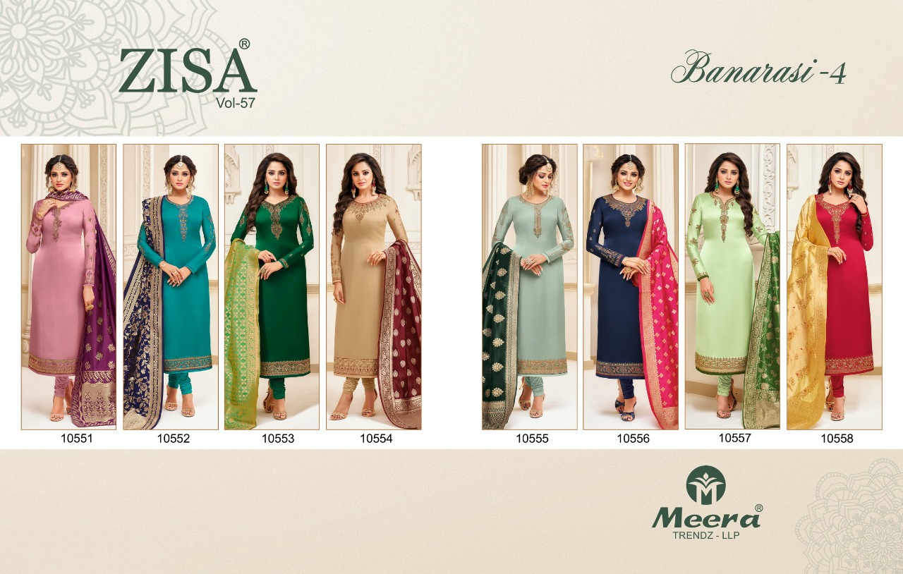 Zisa Vol 57 Banarasi 4 By Meera Trendz Series 10551 To 10558 Satin Georgette Designer Suits Wholesale Supplier Gujarat