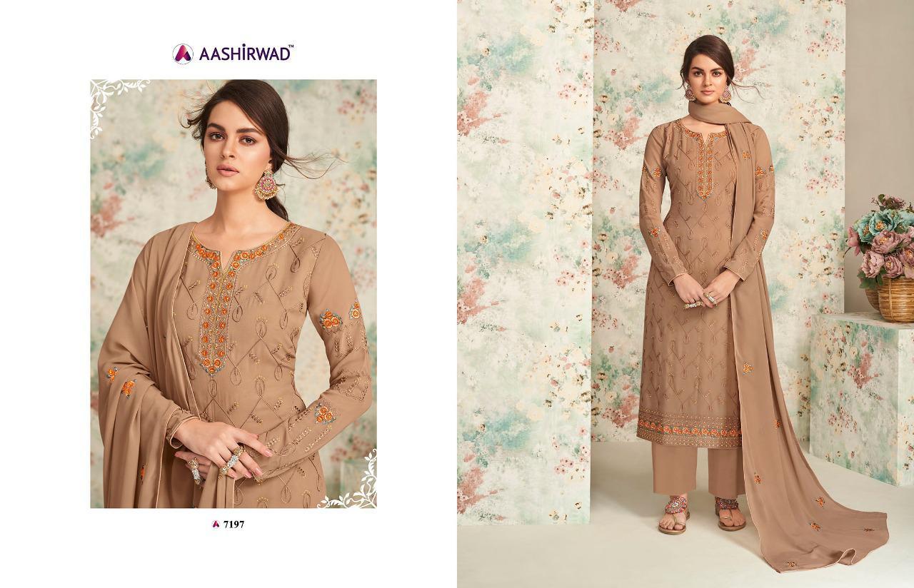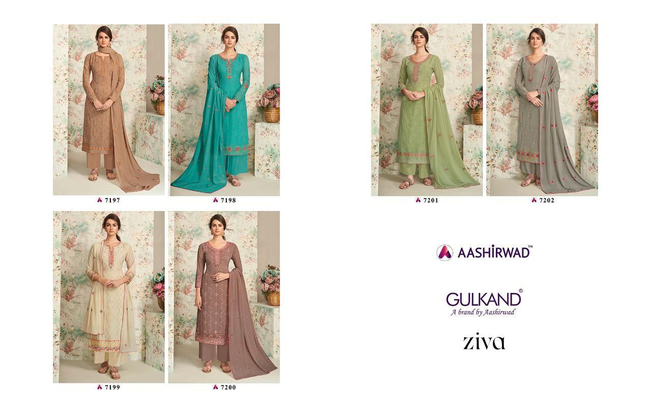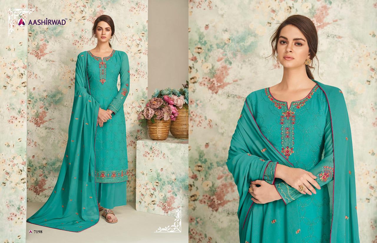 Buy Online Ziva Aashirwad Series 7197 Designer Party Wear Suits Wholesale Supplier Gujarat 6 Pcs of Full Catalogue at Wholesale Price. Looking for Ziva Aashirwad Series 7197 Designer Party Wear Suits Wholesale Supplier Gujarat Full Catalouge at Best Price? Buy Now Ziva Aashirwad Series 7197 Designer Party Wear Suits Wholesale Supplier Gujarat at Wholesale Rate of Rs 8700 with Total 6 Pcs from authroized dealer and supplier of AASHIRWAD Brand. Cost of Each piece is just only Rs 1450 which is very low and affordable price to resale the product in your retail store ,This is Surat based Wholesale Supplier & Dealer of AASHIRWAD Brand. Click on Brand name to Know more about AASHIRWAD Brand's products.Call or Whatsapp on 9898838984 for booking or enquiry