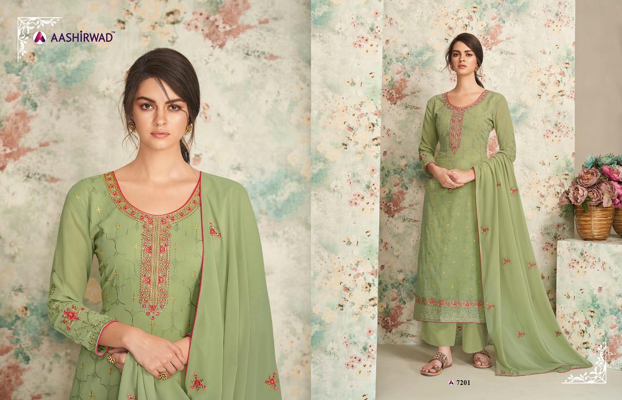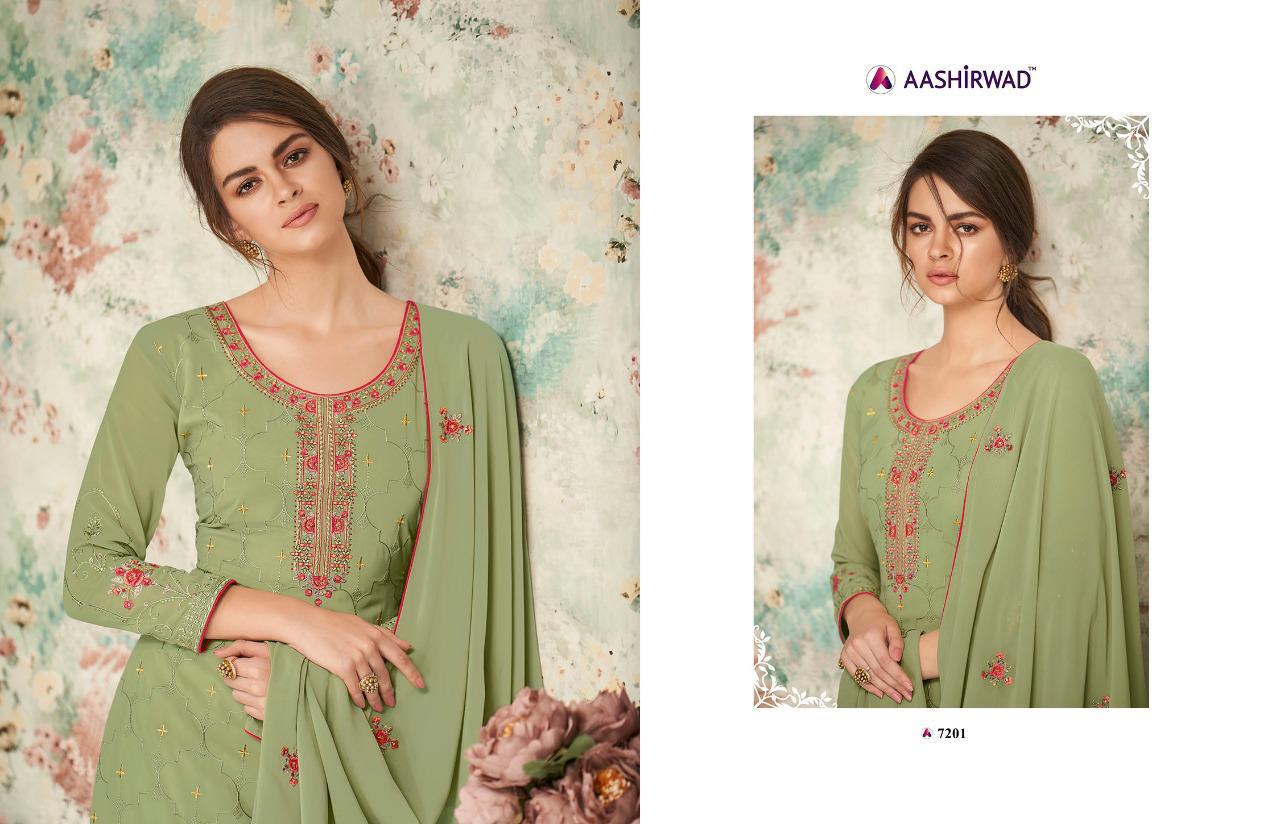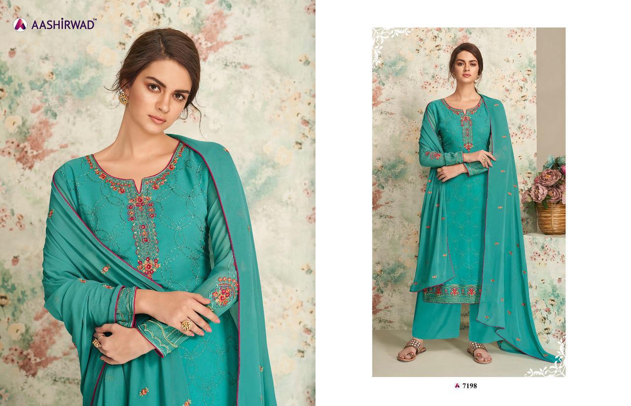 Buy Online Ziva Aashirwad Series 7197 Designer Party Wear Suits Wholesale Supplier Gujarat 6 Pcs of Full Catalogue at Wholesale Price. Looking for Ziva Aashirwad Series 7197 Designer Party Wear Suits Wholesale Supplier Gujarat Full Catalouge at Best Price? Buy Now Ziva Aashirwad Series 7197 Designer Party Wear Suits Wholesale Supplier Gujarat at Wholesale Rate of Rs 8700 with Total 6 Pcs from authroized dealer and supplier of AASHIRWAD Brand. Cost of Each piece is just only Rs 1450 which is very low and affordable price to resale the product in your retail store ,This is Surat based Wholesale Supplier & Dealer of AASHIRWAD Brand. Click on Brand name to Know more about AASHIRWAD Brand's products.Call or Whatsapp on 9898838984 for booking or enquiry