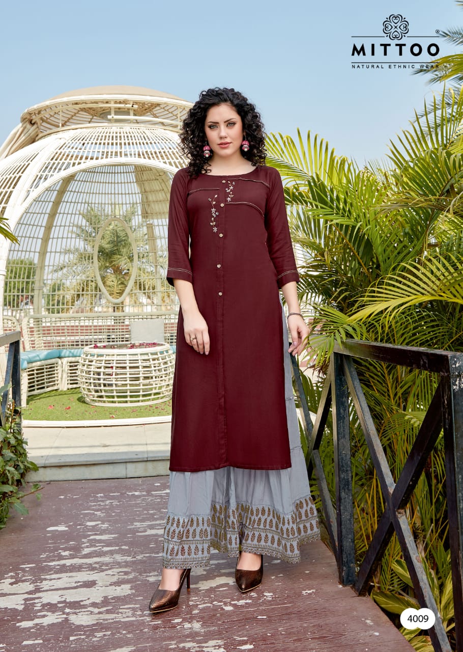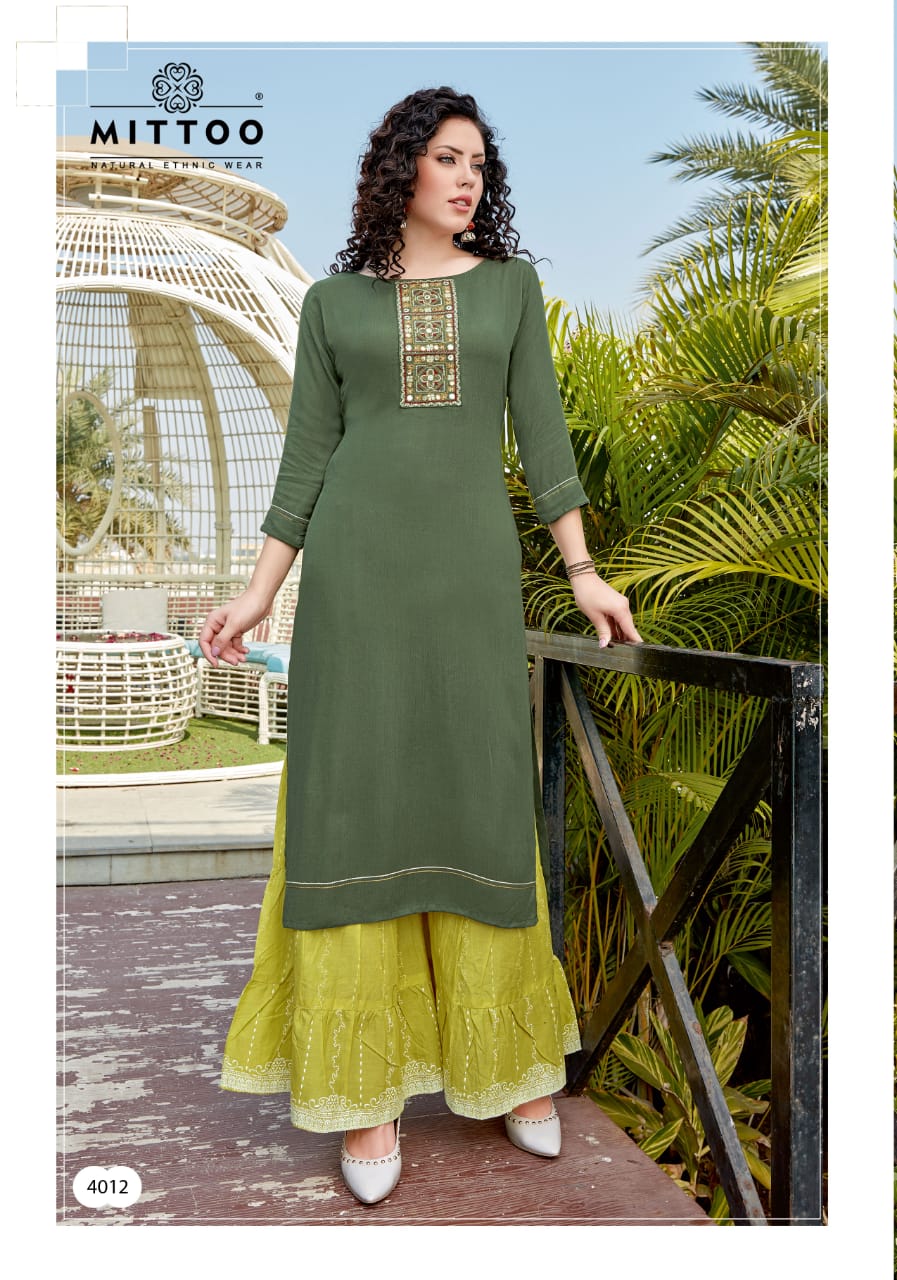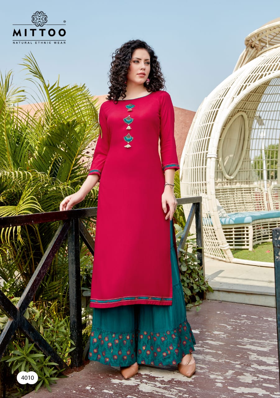 Buy Online Zoori 2 By Mittoo Kurti With Sharara Wholesale Supplier Gujarat 8 Pcs of Full Catalogue at Wholesale Price. Looking for Zoori 2 By Mittoo Kurti With Sharara Wholesale Supplier Gujarat Full Catalouge at Best Price? Buy Now Zoori 2 By Mittoo Kurti With Sharara Wholesale Supplier Gujarat at Wholesale Rate of Rs 6560 with Total 8 Pcs from authroized dealer and supplier of MITTOO Brand. Cost of Each piece is just only Rs 820 which is very low and affordable price to resale the product in your retail store ,This is Surat based Wholesale Supplier & Dealer of MITTOO Brand. Click on Brand name to Know more about MITTOO Brand's products.Call or Whatsapp on 9898838984 for booking or enquiry