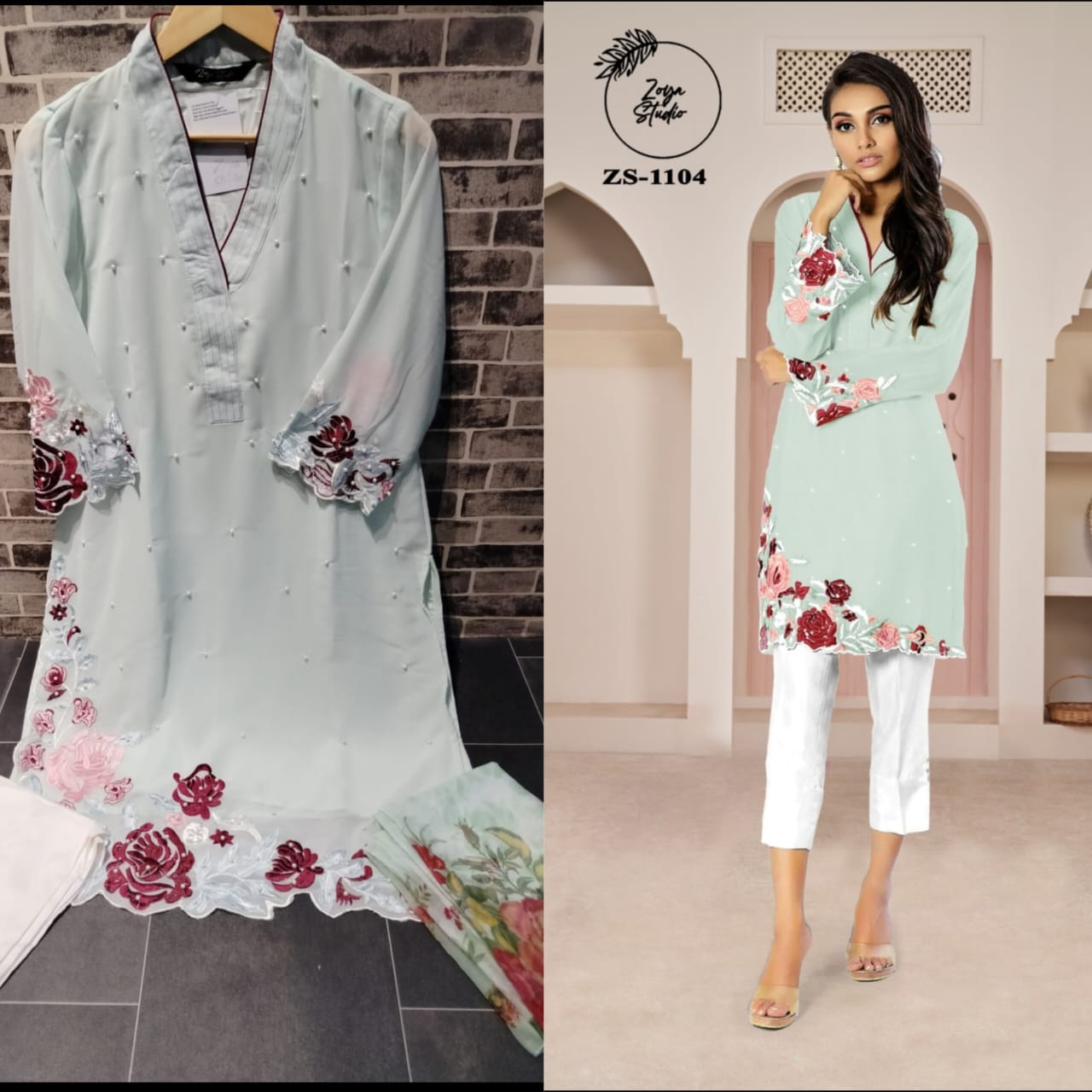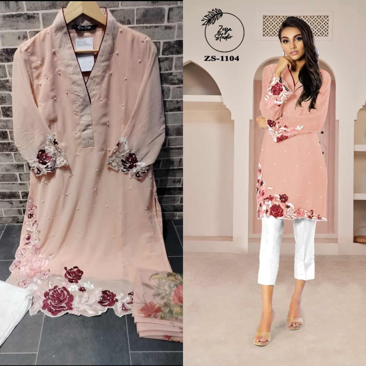*? _Zoya Studio Present_?* *?Ready to wear collection?* ?We are Introducing our *LUXURY PRET FORMAL WEAR COLLECTION* To Make You look Unique and Classy.. ? *With Supirier Quality* ????? by *_#Zoya Studio_* *(#ZS-1104)* ?????? ? *Description* ? ??????? *#zoyastudio Presents Chic yet classy for any age! an all season staple, the Pink, Nude And Sea Green color is brought to life with floral embroidery in hue of red, pastel pink and off white. Tailored narrow-leg trousers add the finishing touch to create a timeless, elegant ensemble.* ? *Details*? ??????? ? *Top*:- *Pure Georgette Fabric* ? *Bottom* :- *100% Jaam Cotton Fabrics* ? *Inner*- *Santoon* ? *Dupatta*- *Shiffon With Digital Print* ? *3 Colours* 1) *Peach* 2) *Pink* 3) *Sea Green* ? *Size Chart*? ? *Top xl size chest* (42) ? *Bottom xl size* (38) *Full set available* *Price:- 1199?/-* ???Colour may slightly vary due to light effect??? ? *Book Fast Limited Stock* ? |