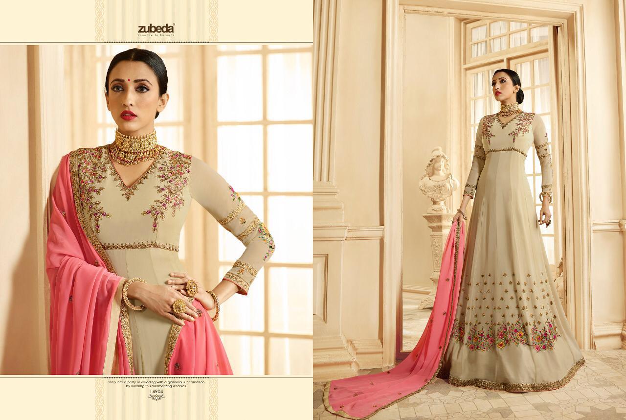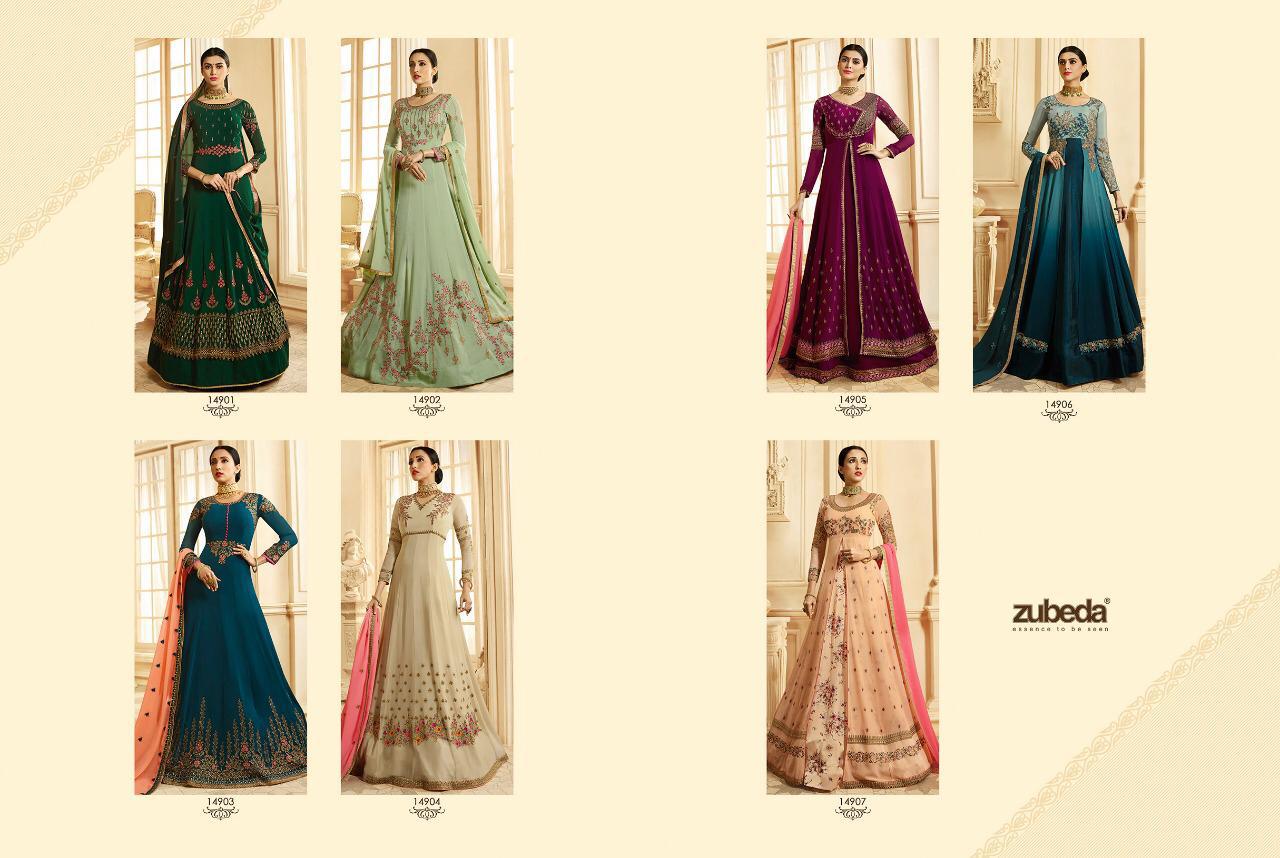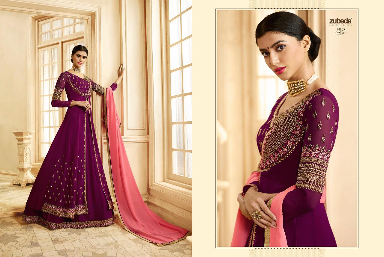 Zubeda sehar series 14109 to 14107 desinger party wear anarkali suits wholesale supplier and dealer Surat RATE 1990/- GST ship extra |