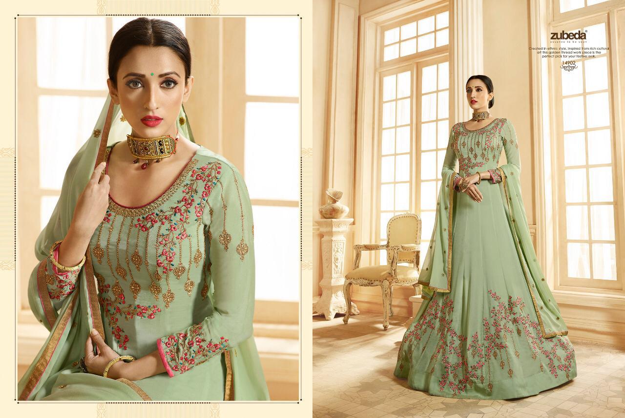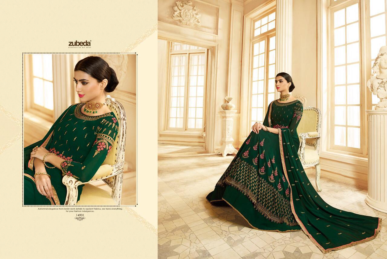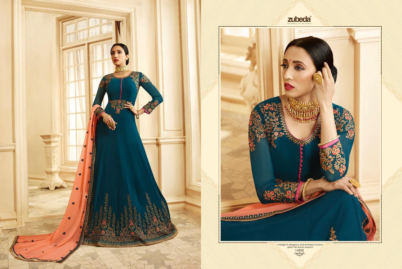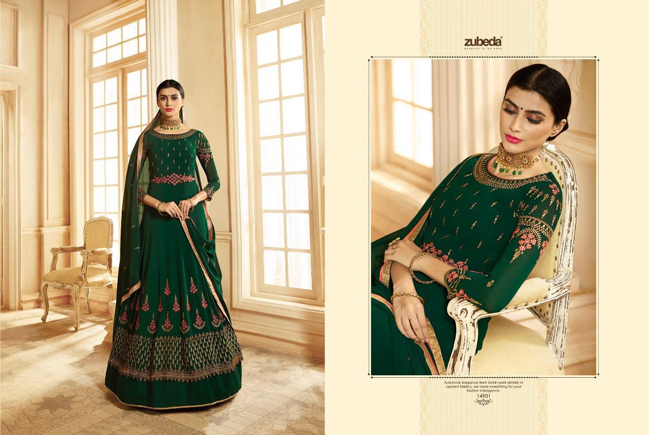 Zubeda sehar series 14109 to 14107 desinger party wear anarkali suits wholesale supplier and dealer Surat RATE 1990/- GST ship extra |