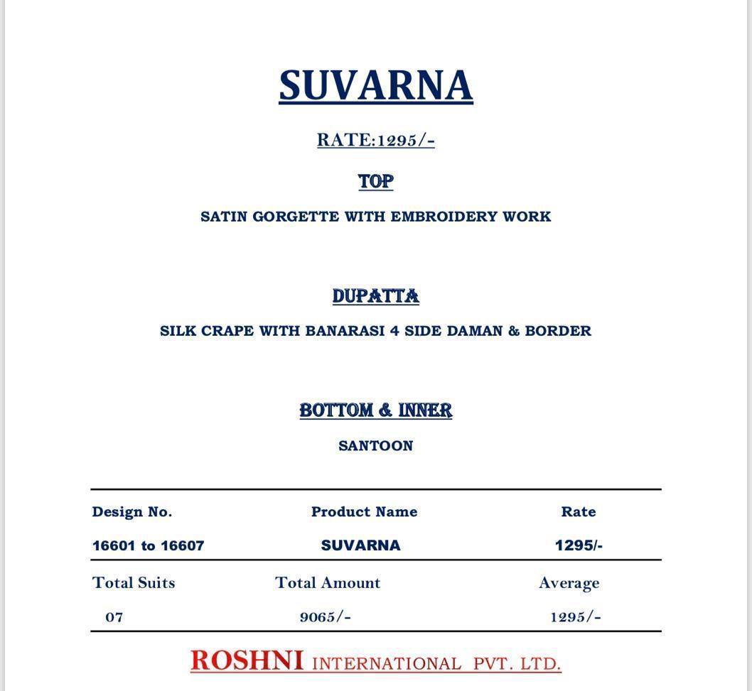 Buy Online Zubeda Suvarna Series 16601 To 16607 Georgette Embroidered Designer Party Wear Suits Wholesale Supplier Gujarat 7 Pcs of Full Catalogue at Wholesale Price. Looking for Zubeda Suvarna Series 16601 To 16607 Georgette Embroidered Designer Party Wear Suits Wholesale Supplier Gujarat Full Catalouge at Best Price? Buy Now Zubeda Suvarna Series 16601 To 16607 Georgette Embroidered Designer Party Wear Suits Wholesale Supplier Gujarat at Wholesale Rate of Rs 9065 with Total 7 Pcs from authroized dealer and supplier of ZUBEDA Brand. Cost of Each piece is just only Rs 1295 which is very low and affordable price to resale the product in your retail store ,This is Surat based Wholesale Supplier & Dealer of ZUBEDA Brand. Click on Brand name to Know more about ZUBEDA Brand's products.Call or Whatsapp on 9898838984 for booking or enquiry