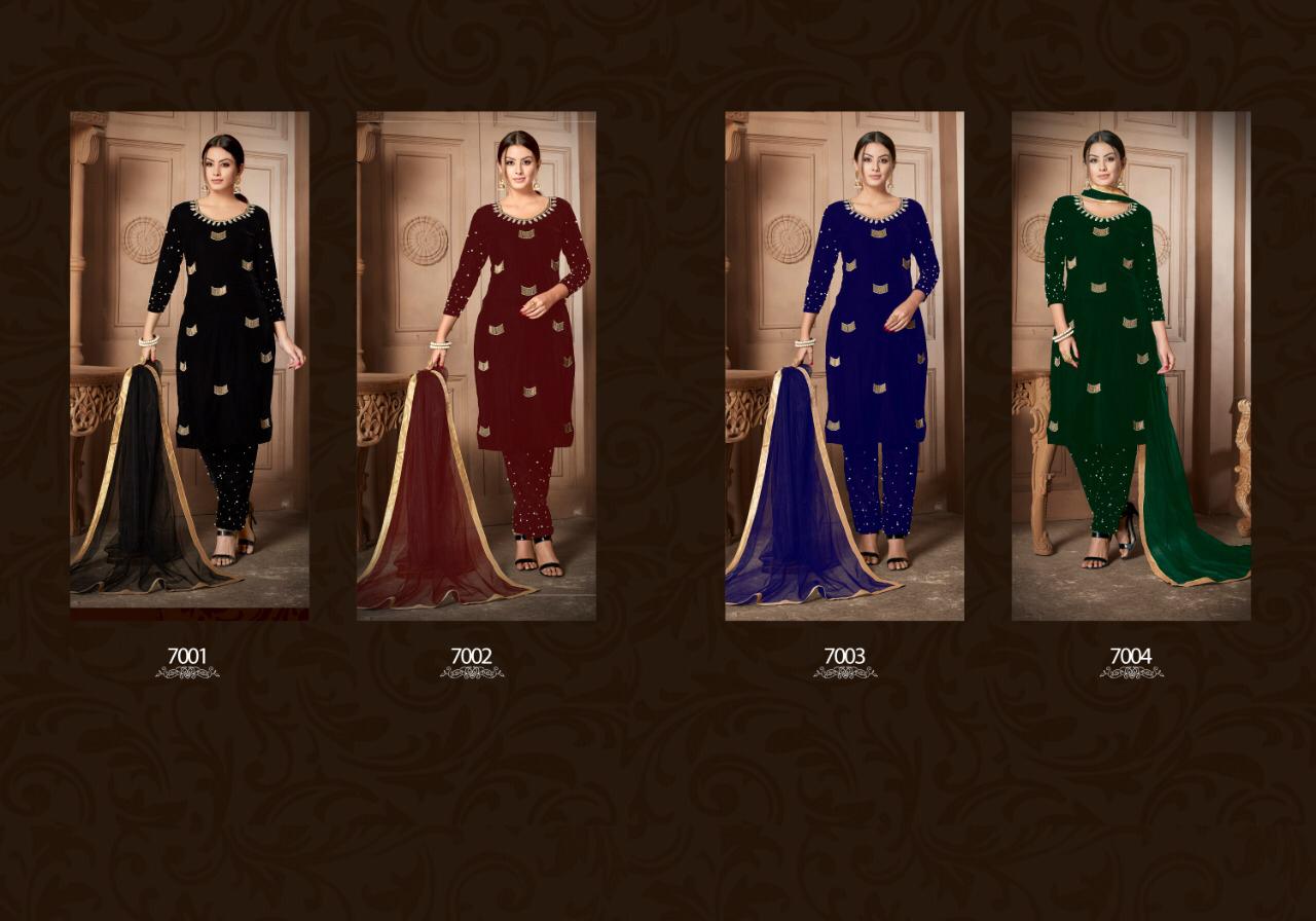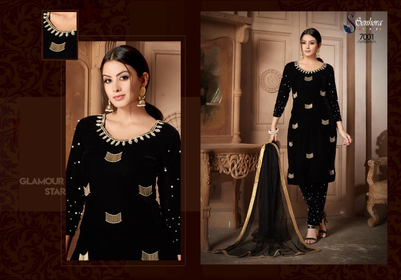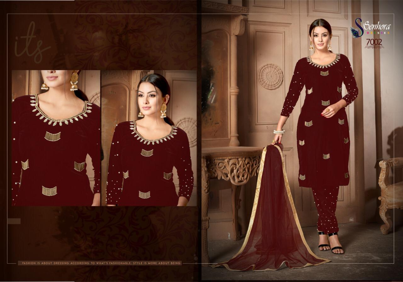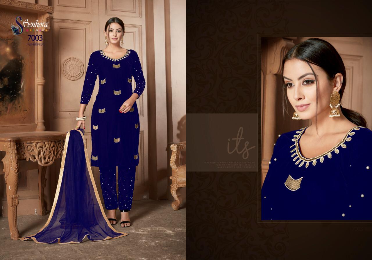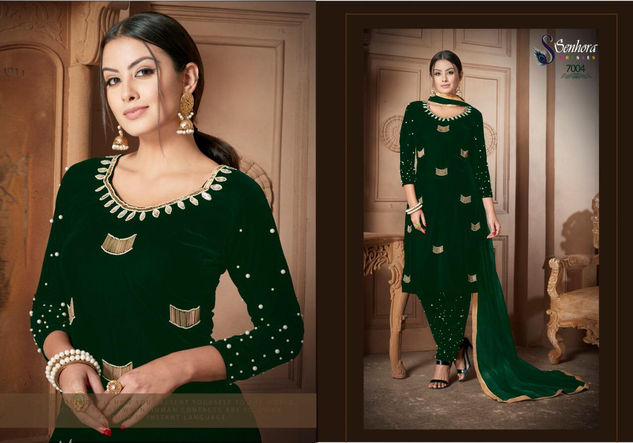 Buy Online Zubi Senhora Vol 7 By Senhora 7001 Series Designer Pure Velvet With Handwork Salwsr Kameez Catlog Wholesaler Surat 4 Pcs of Full Catalogue at Wholesale Price. Looking for Zubi Senhora Vol 7 By Senhora 7001 Series Designer Pure Velvet With Handwork Salwsr Kameez Catlog Wholesaler Surat Full Catalouge at Best Price? Buy Now Zubi Senhora Vol 7 By Senhora 7001 Series Designer Pure Velvet With Handwork Salwsr Kameez Catlog Wholesaler Surat at Wholesale Rate of Rs 7000 with Total 4 Pcs from authroized dealer and supplier of Brand. Cost of Each piece is just only Rs 1750 which is very low and affordable price to resale the product in your retail store ,This is Surat based Wholesale Supplier & Dealer of Brand. Click on Brand name to Know more about Brand's products.Call or Whatsapp on 9898838984 for booking or enquiry