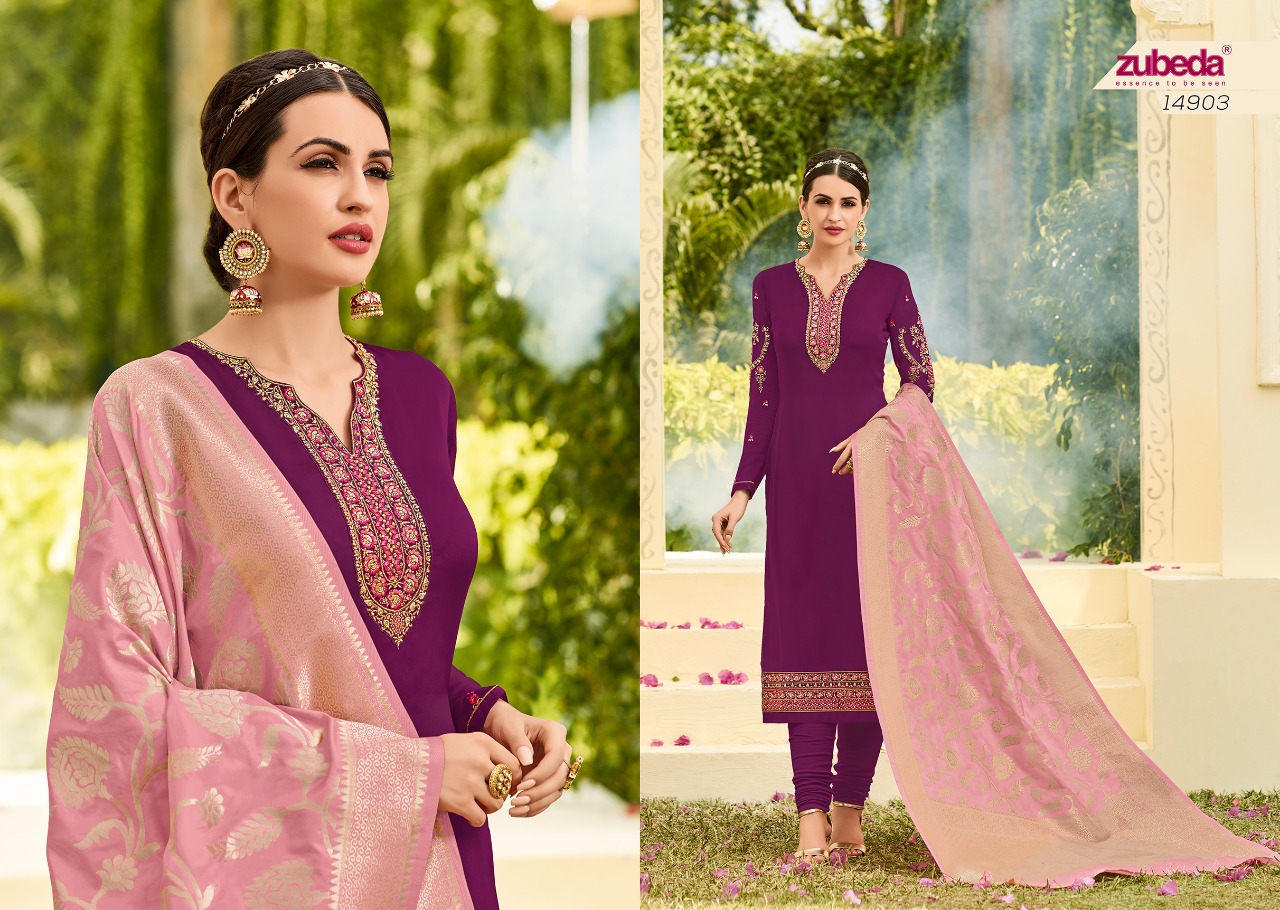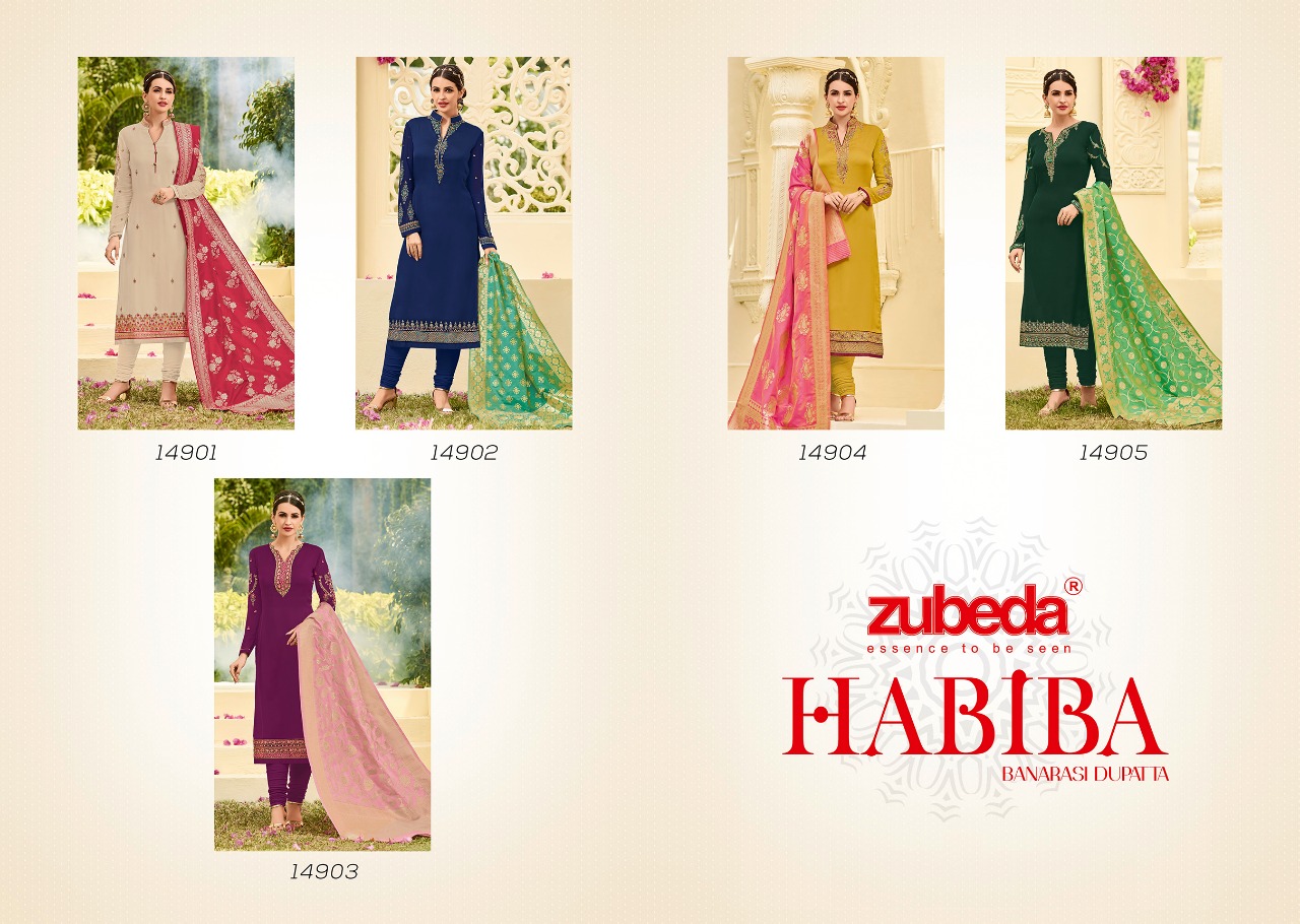 Zuebda Habiba Banarasi Duptta Series 14901 To 14905 Designer Suits Wholesale Supplier And Dealer Surat