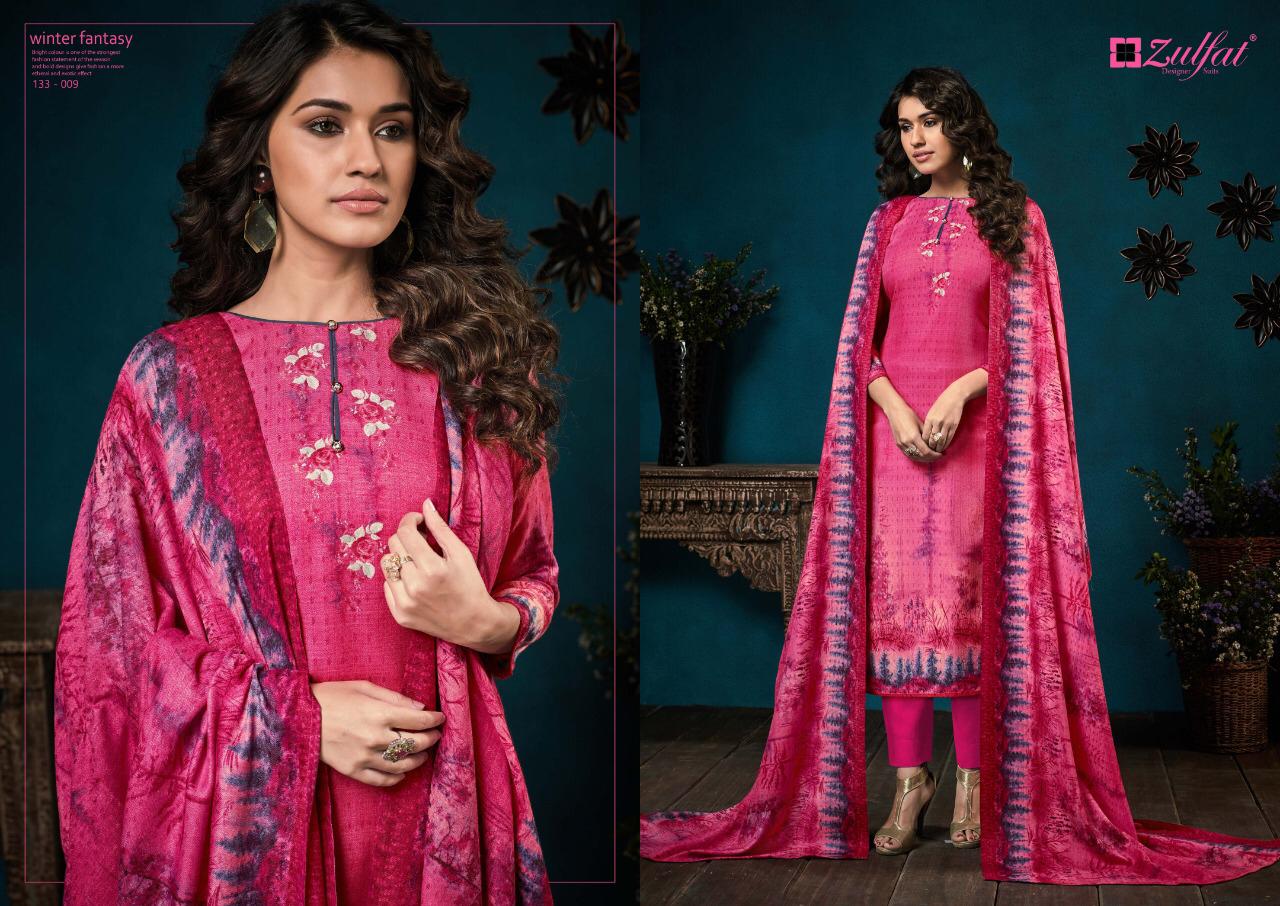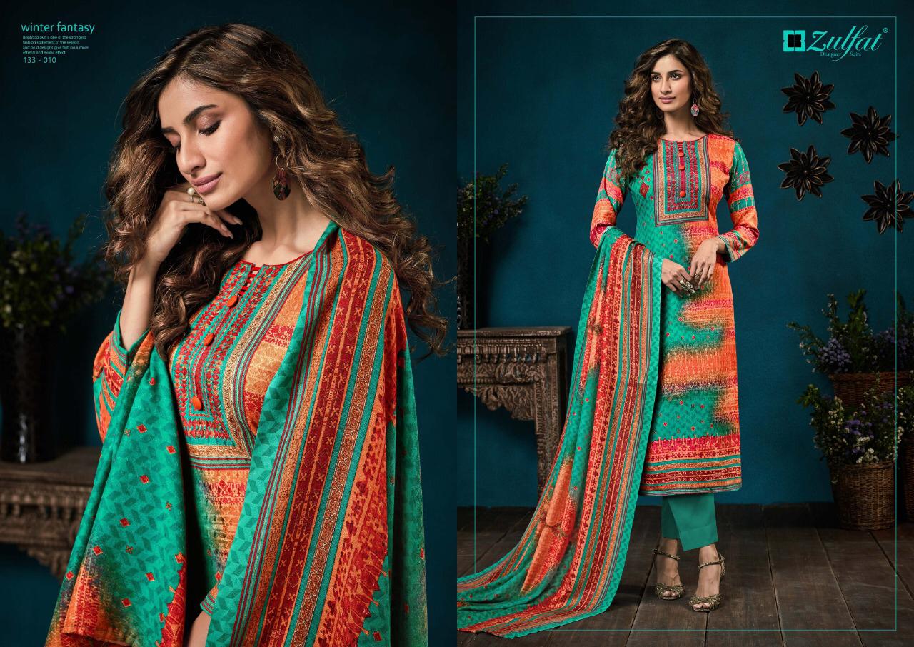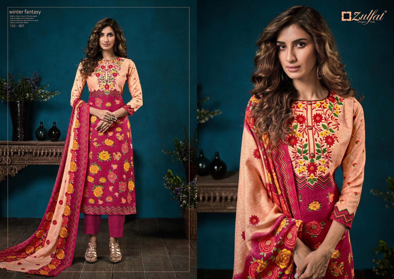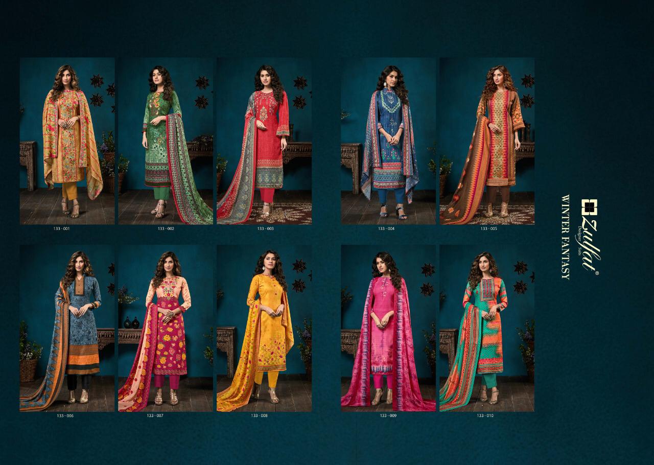 Buy Online Zulfat Designer Winter Fantasy Dress Materials Wholesale Supplier And Dealer Gujarat 10 Pcs of Full Catalogue at Wholesale Price. Looking for Zulfat Designer Winter Fantasy Dress Materials Wholesale Supplier And Dealer Gujarat Full Catalouge at Best Price? Buy Now Zulfat Designer Winter Fantasy Dress Materials Wholesale Supplier And Dealer Gujarat at Wholesale Rate of Rs 3950 with Total 10 Pcs from authroized dealer and supplier of Brand. Cost of Each piece is just only Rs 395 which is very low and affordable price to resale the product in your retail store ,This is Surat based Wholesale Supplier & Dealer of Brand. Click on Brand name to Know more about Brand's products.Call or Whatsapp on 9898838984 for booking or enquiry