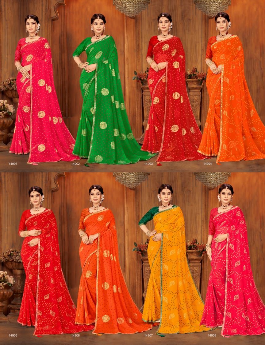 Divya Fancy Bandhej Print Saree Collection Manufacturer Surat