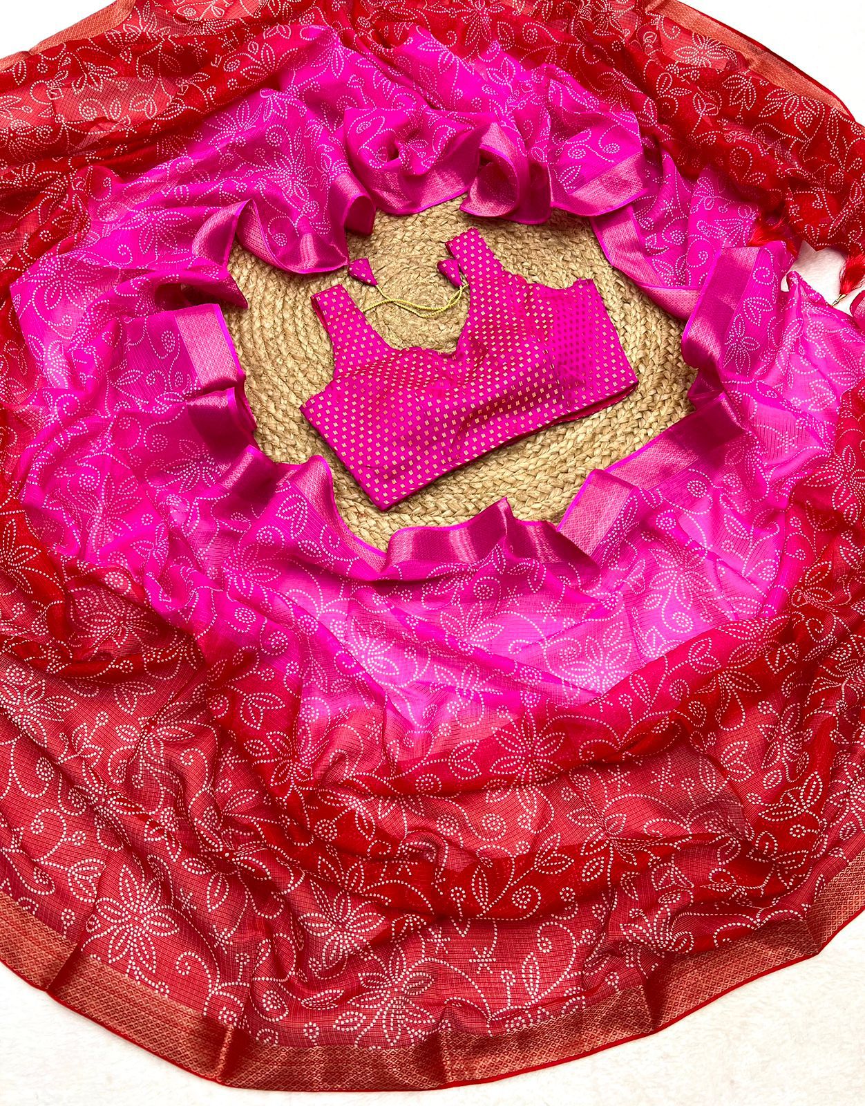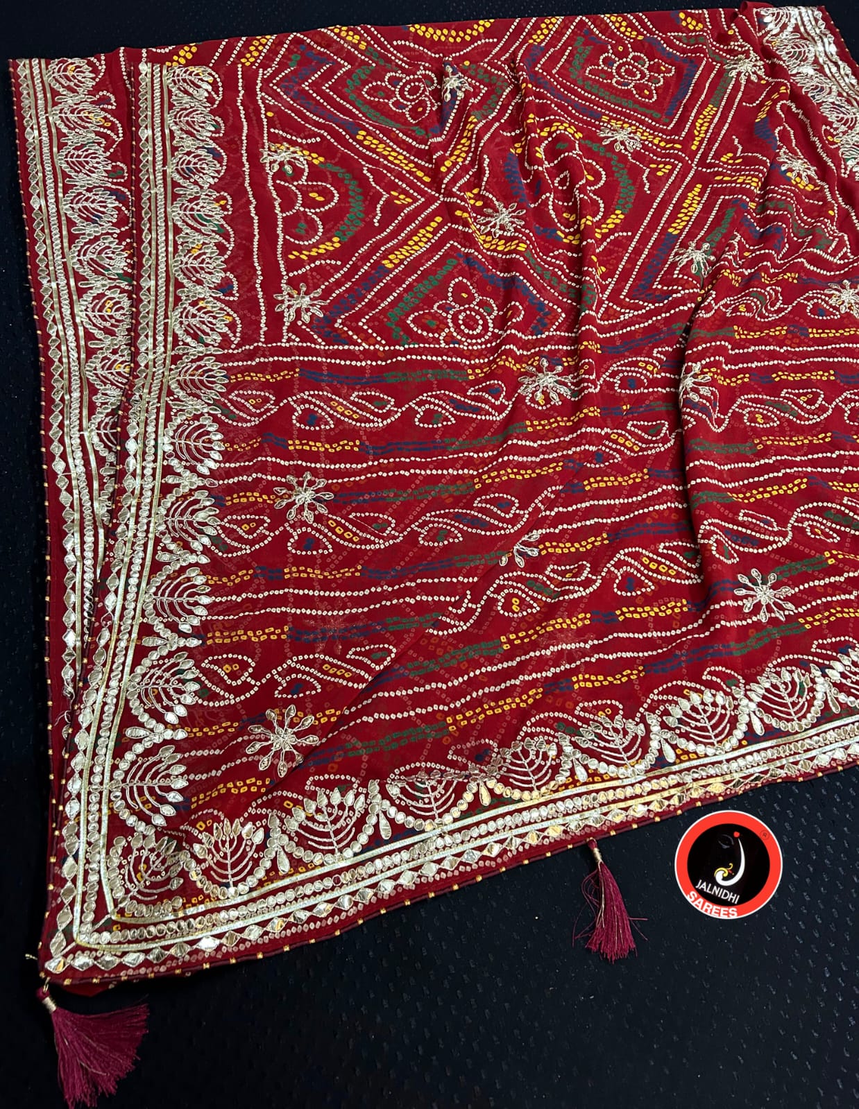 Saubhagya Gotta C Pallu Bandhani Saree Lace And Latkan