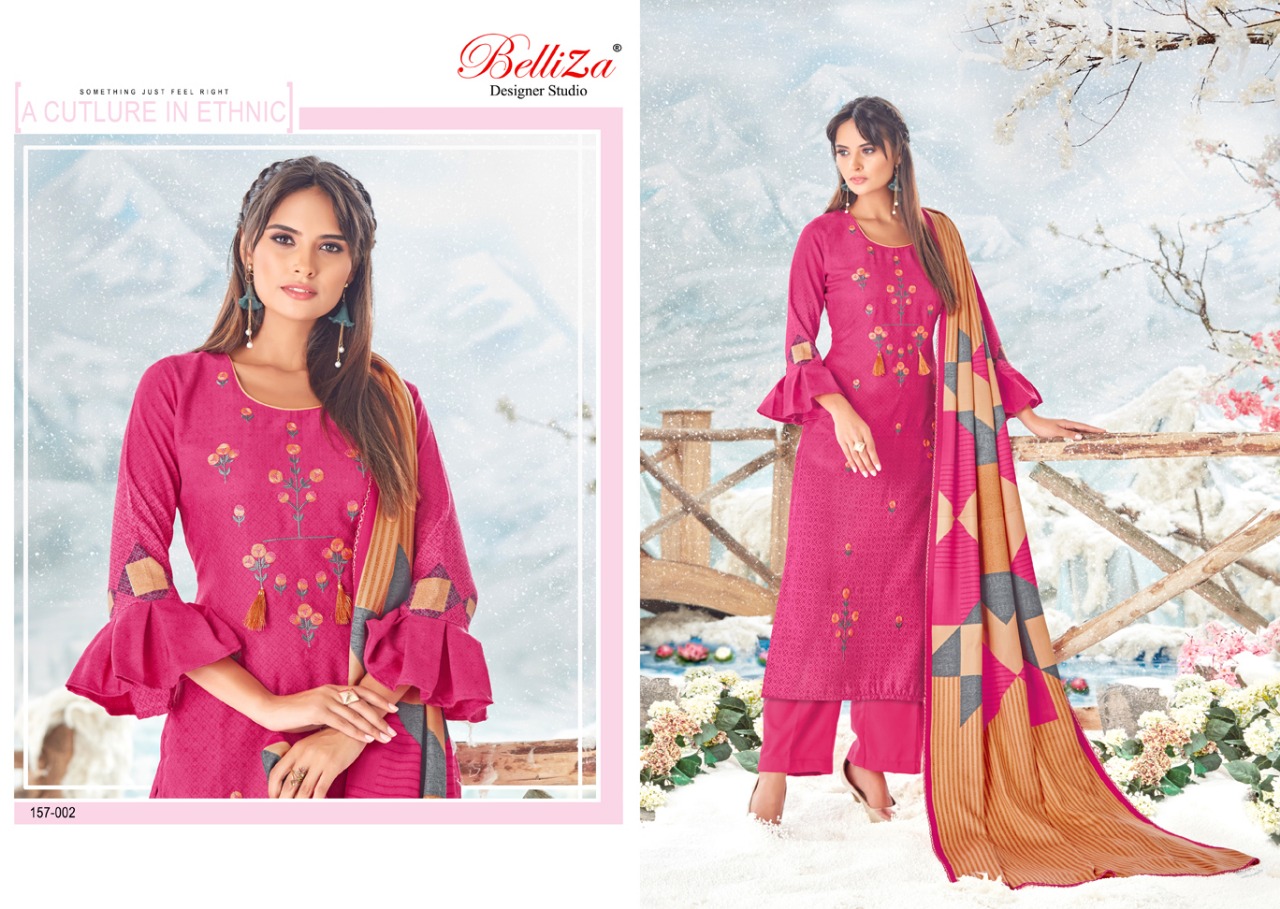 Abida By Belliza Desinger Studio Pashmina Digital Printed Fancy Embroidered Suits Collection Catalog...