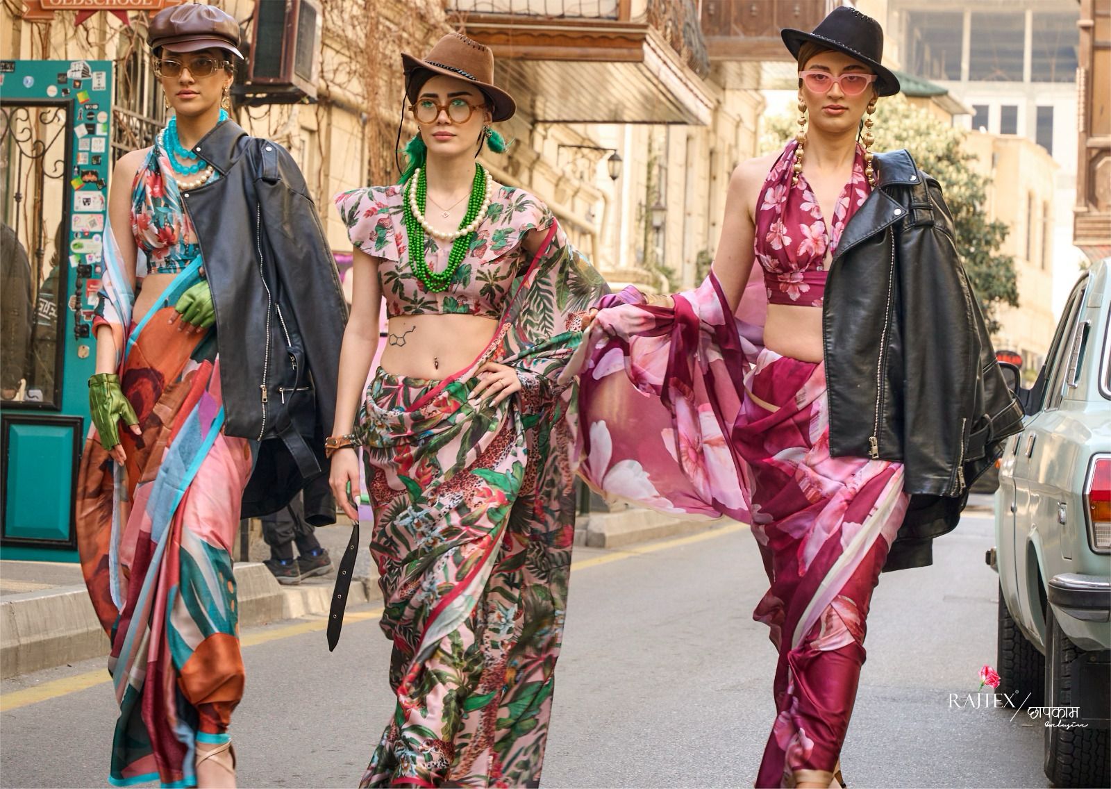 Kolumbus Series 381001 To 381010 By Rajtex Pure Satin Georgette Digital Print Saree Collection Manuf...