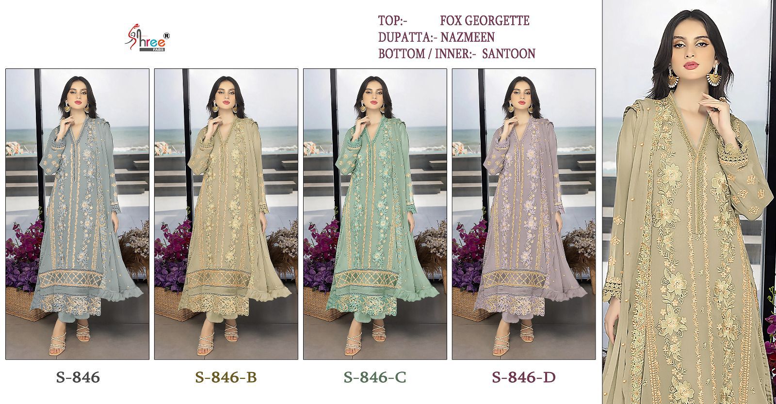 S 846 Colours By Shree Fabs Georgette Embroidered Collection Manufacturer Surat