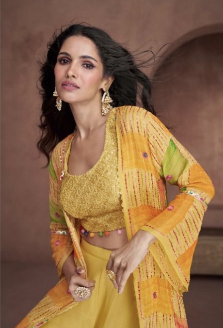 Sayuri Designer Polki Georgette Long Gown Sharara Jactek Style Top Skirt Collection