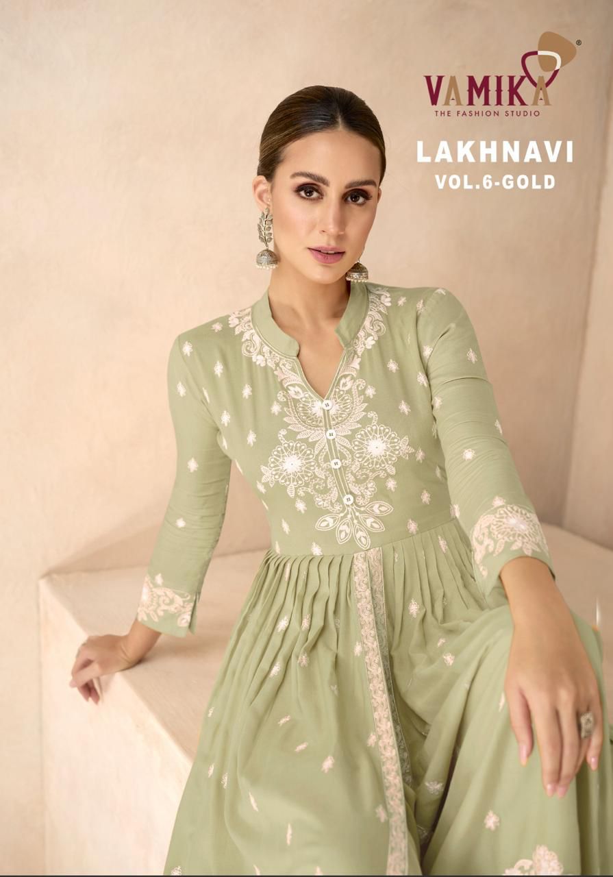 Lakhnavi Vol 6 Gold By Vamika Top Plazo Collection Manufacturer Surat