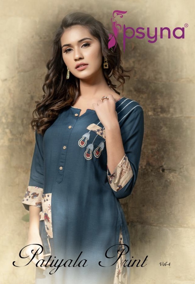 Patiyala Print Vol 4 By Psyna 4001 Series Fancy Reyon Slub Kurti With Patiyala Collection Wholesaler...