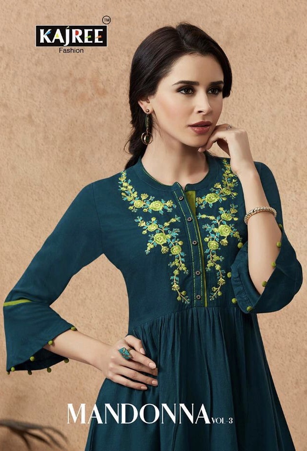 Mandonna Vol 3 By Kajree 1001 Series Fancy Reyon Emb Kurti Bottom Wholesale Dealer Surat