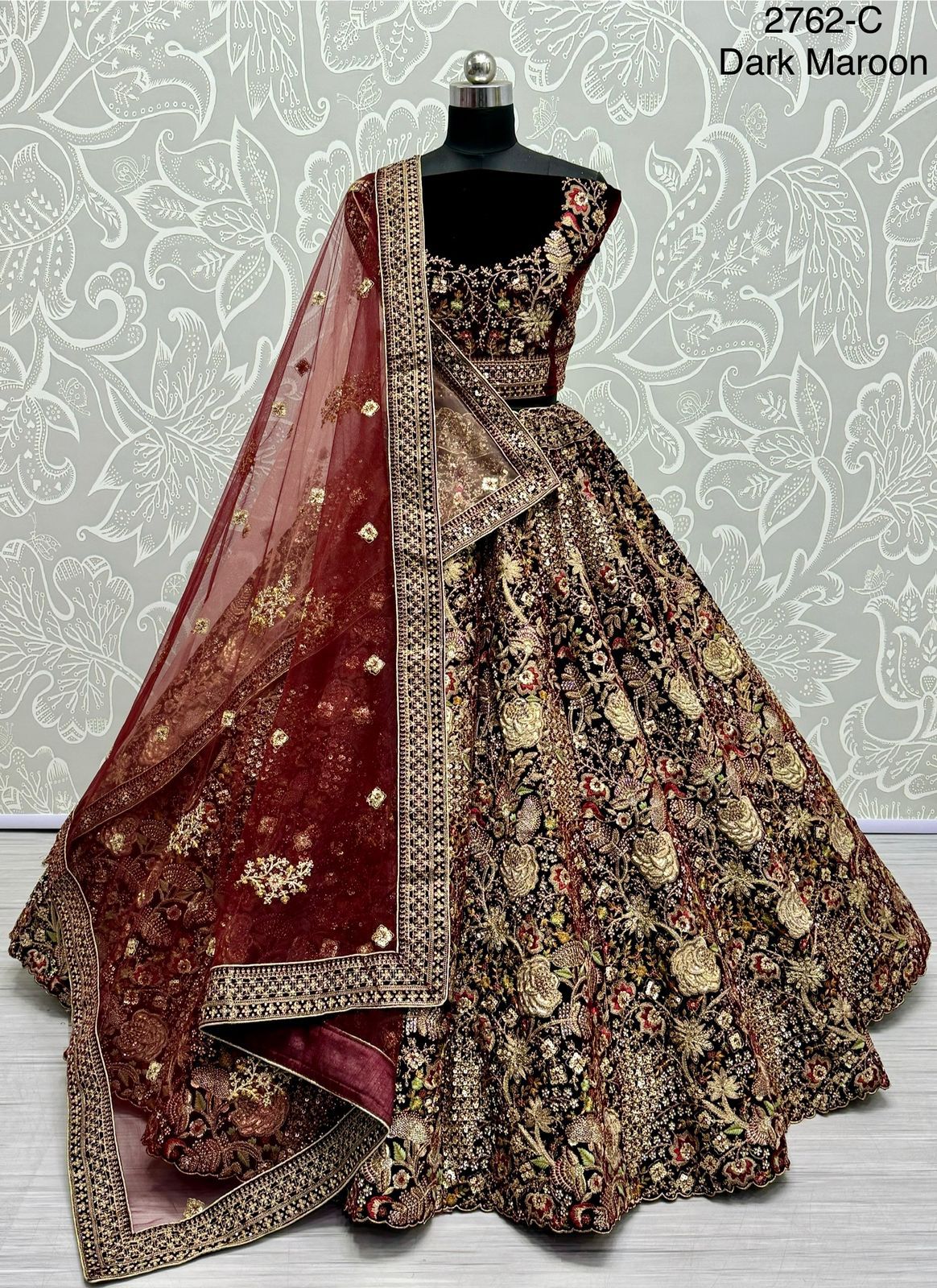New Design 2743 Beutiful Detailed Thread Work Velvet Patch Work Wedding Lehenga Choli